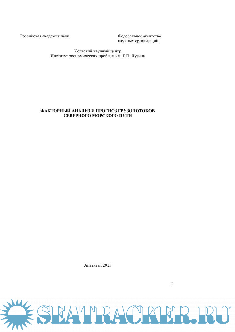 Факторный анализ и прогноз грузопотоков Северного морского пути