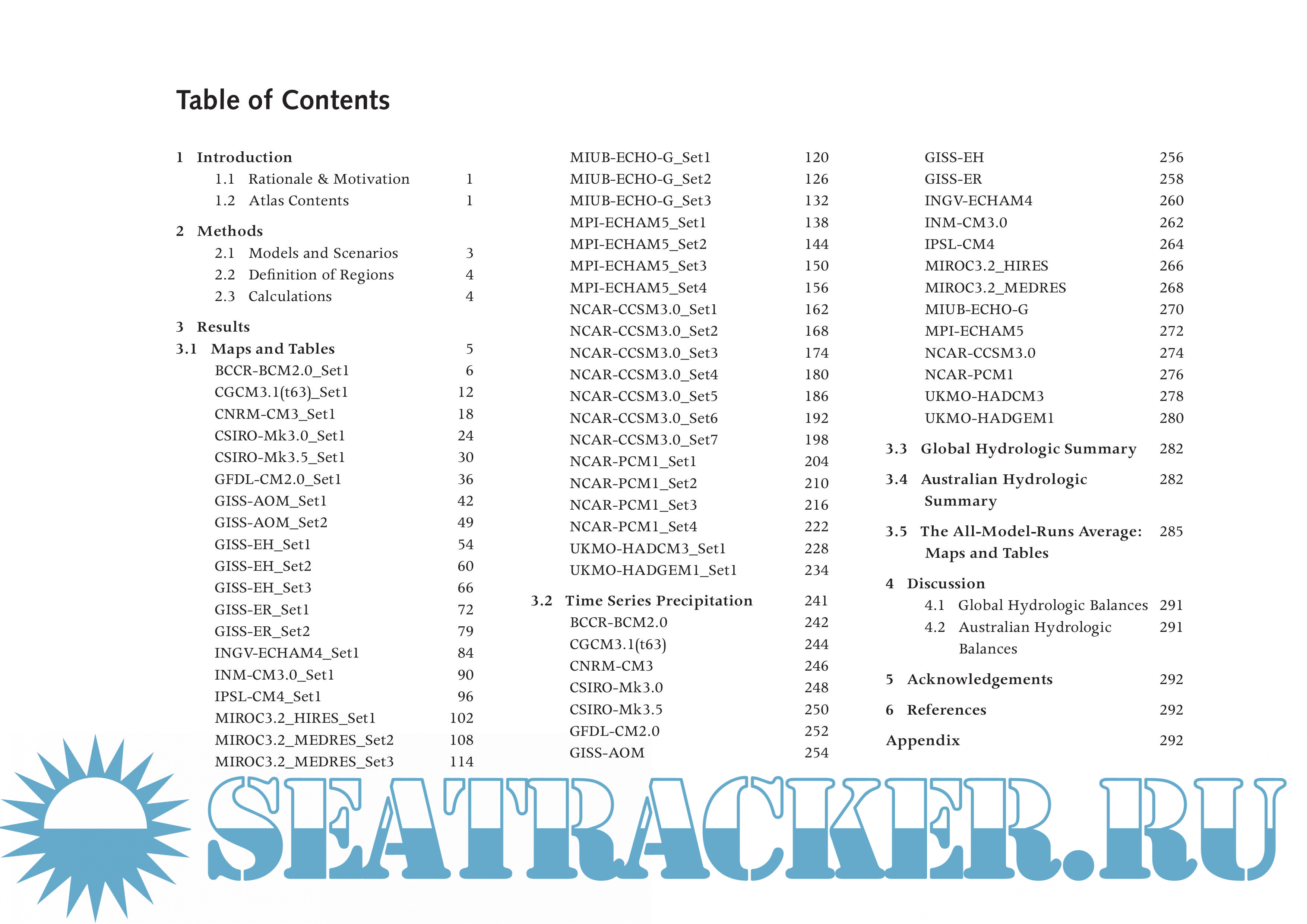 The Atlas contains maps and tables that document model predictions contributed by international climate modelling groups to the 2007 4th Assessment Report of the Intergovernmental Panel on Climate Change. The predictions are made available here via the wonders of the internet and ongoing cooperation by the international climate modelling community who routinely archive their results.