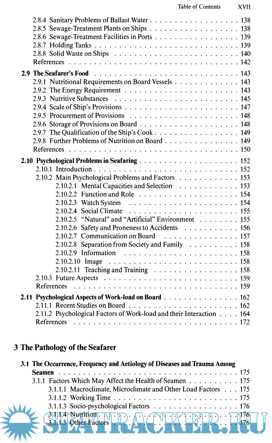 Year: 1984 Language: english Author: W. H. G. Goethe, E. N. Watson, D.T. Jones Genre: Handbook Publisher: Springer International Publishing Edition: 1 ISBN: 978-3-642-69415-8 Format: PDF Quality: OCR without errors Pages count: 507 Description: International cooperation on the health of seafarers began many years ago. As early as 1921, an international convention regarding this matter was presented to govern ments of maritime countries for ratification. The First World Health Assembly, in 1948, recommended that WHO should establish, with the International Labour Of fice, a Joint Committee on the hygiene of seafarers. The first session of this Com mittee, held in 1949, defined the problems affecting the health of seamen and made a number of recommendations. In the opinion of this Joint Committee, the health of seamen called for interna tional attention for a nu mb er of reasons. By the nature of his work, the seafarer is obliged to travel from country to country and is exposed to great variations of cli mate and also to any disease that may be prevalent in the port of call. He may there fore become a carrier of disease, so that the protection of his health is of importance not only to himself and the other members of the crew but also to the populations of other countries he visits. Yet, on account ofthe nature ofhis employment, it is diffi cult to provide the seafarer with the same standard of health care that is gene rally available to other sections of the population.