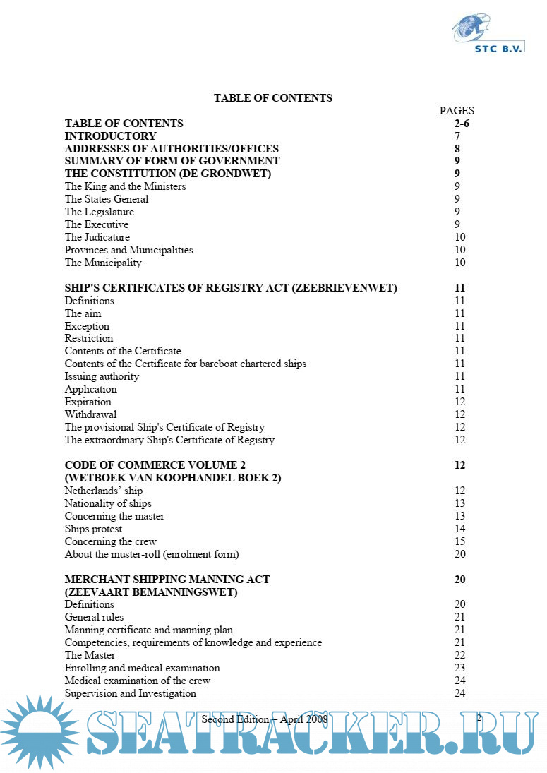 As it is an impossible task to deal with all this in detail, only outlines have been stated in this book. This will provide the Master, the Chief Officer and the Chief Engineer, which intend to work on board of any of Duch fleet vessel, with minimal requsted knowlege of Duch legislations.