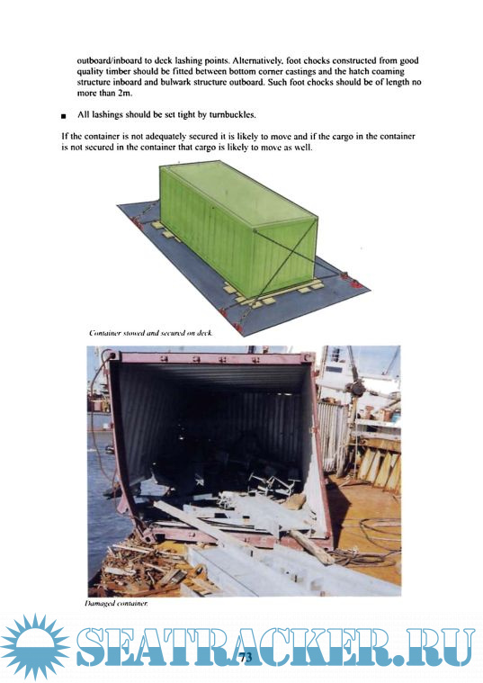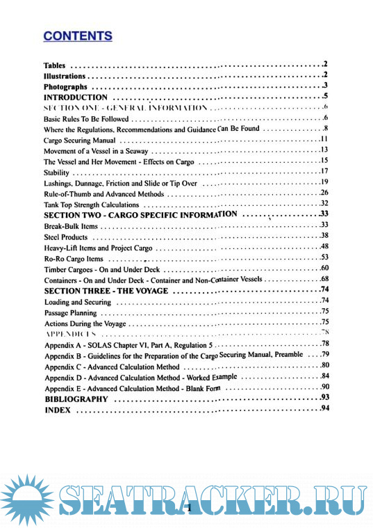 Year: 2003 Language: english Author: C.Bliault Genre: Guide Publisher: North of England P&l Association Limited ISBN: 0-9542012-6-4 Format: PDF Quality: Scanned pages Pages count: 100 Description: This guide will take the reader through some basic rules to be remembered on every occasion during the loading and securing of cargo, will describe where regulations, recommendations and general guidance can be found, will describe recommended methods to be used for particular items and types of cargo, and will then give some guidance upon the points to be remembered during passage-planning and the voyage itself. It is not intended that this guide will give details of precisely how to secure any particular items of cargo. It will set out the basics and point to publications which give the rules to be followed. This guide contains information, such as for the calculation of lashings, taken from Codes, but only that which is essential for the clear understanding of the text.