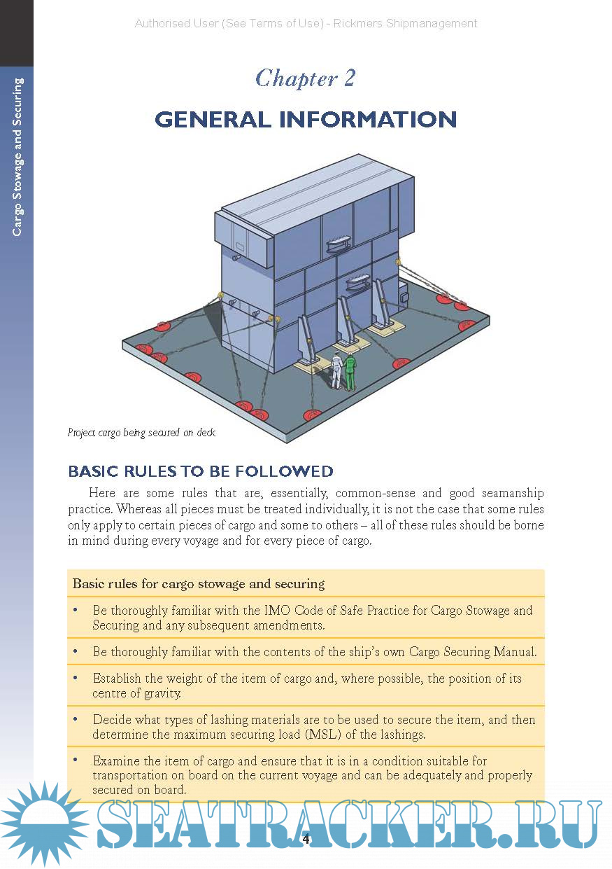Description: This publication is intended for general guidance only to assist in the avoidance of disputes and problems arising from inadequate or incorrect stowage and securing of items of cargo on cargo ships. Readers should take care to ensure that the recommendations contained in this publication are appropriate for a particular situation before implementing them.