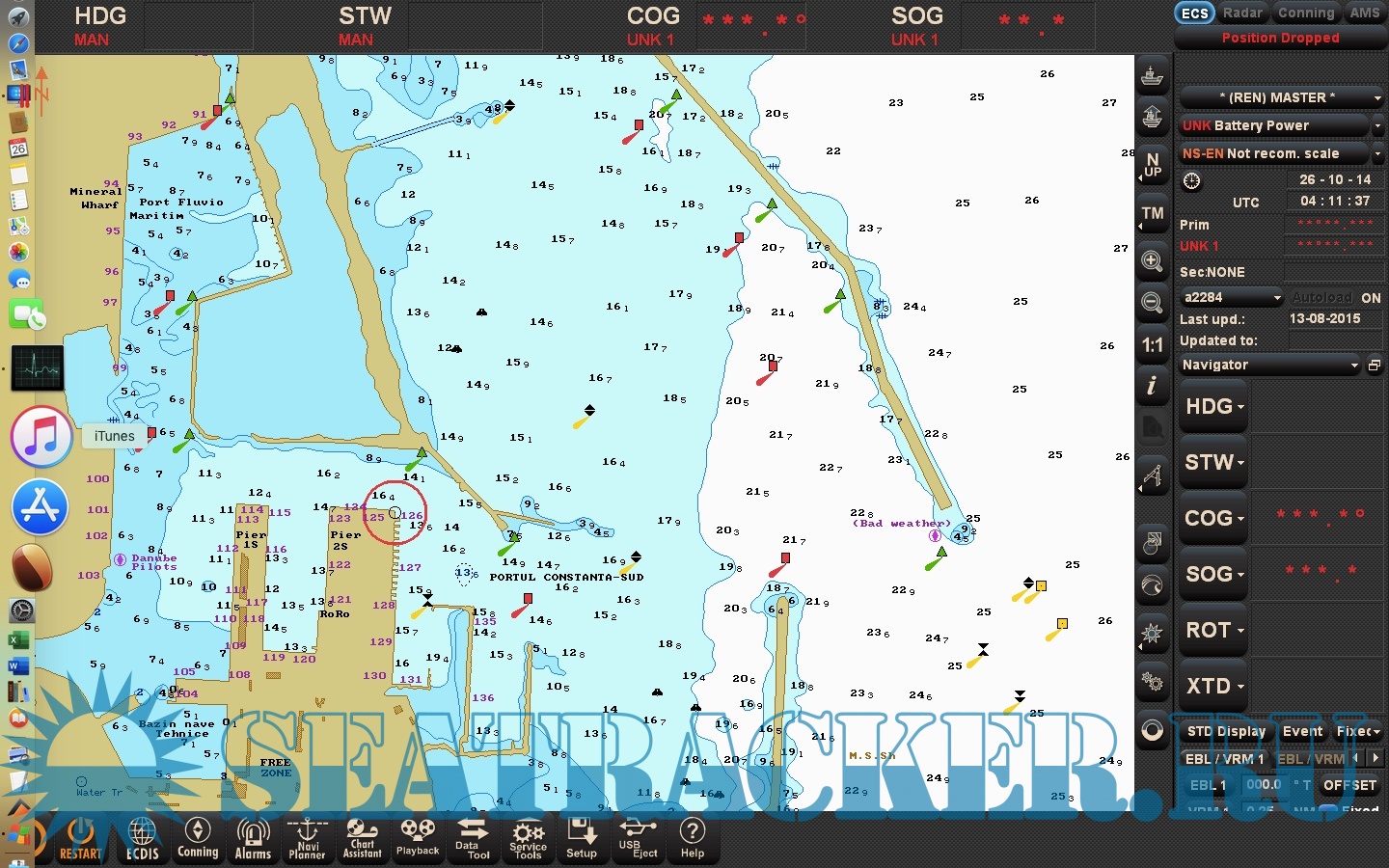 • Monitoring of approach to the dangers to navigation plotted on electronic vector charts or on map created