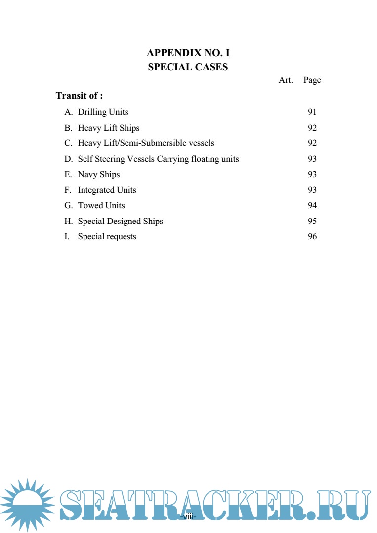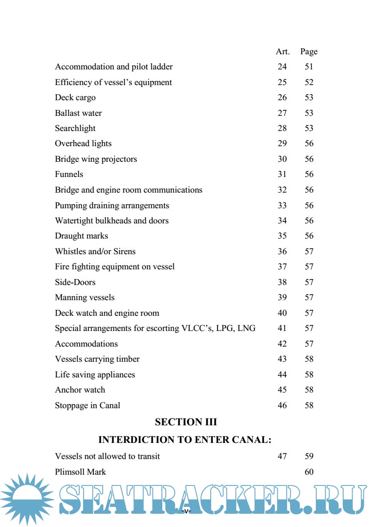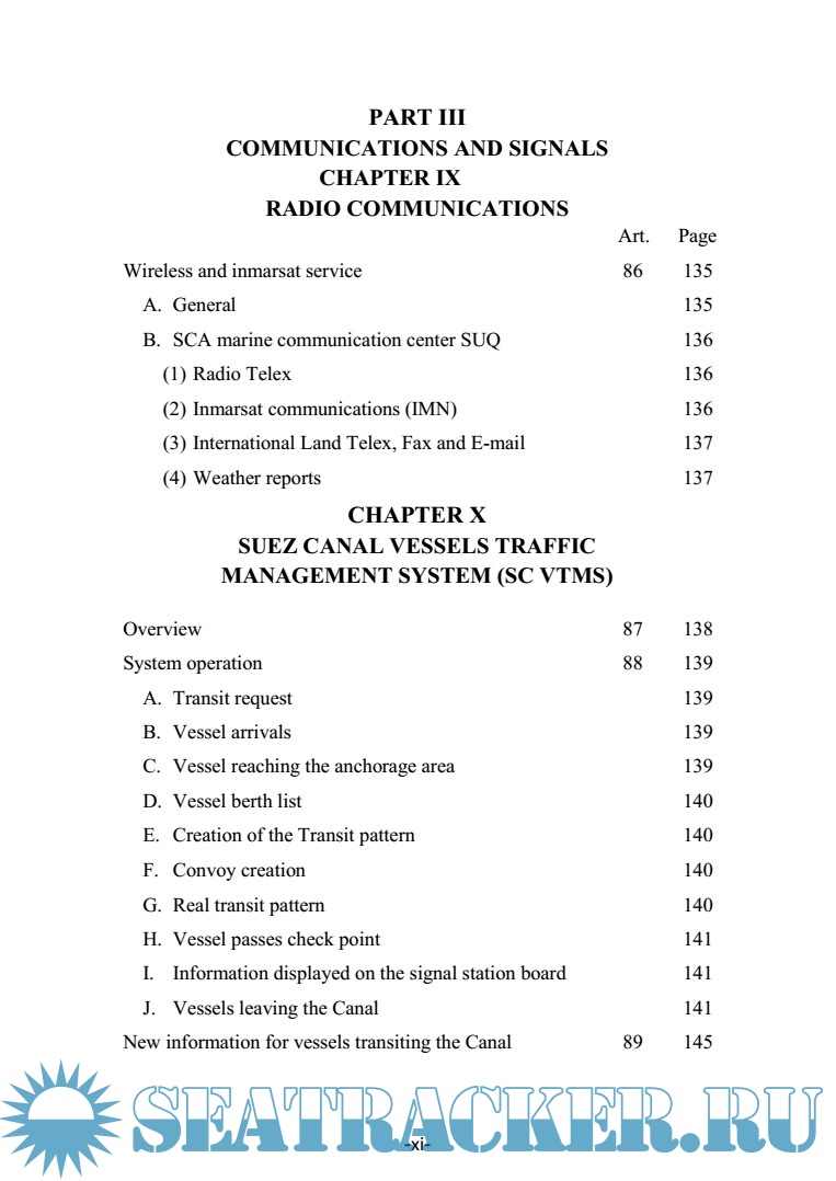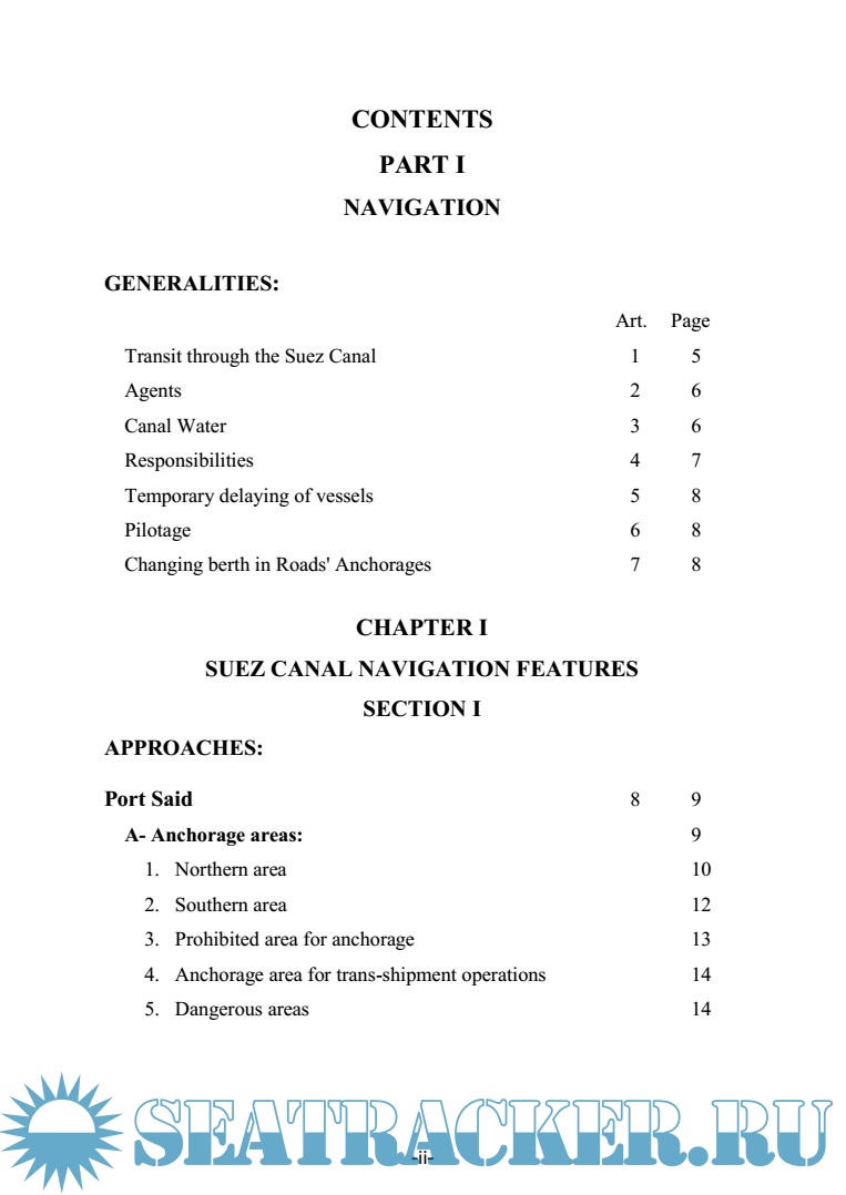 Year: 2015 Language: english Author: SUEZ CANAL AUTHORITY Genre: Convention (rules) Format: PDF Quality: eBook Pages count: 327 Description: Suez Canal Rules of Navigation Additional info: Note: The amendments and modifications introduced to the SCA “Rules of Navigation”,Dec. 2007 edition, have been approved by the SCA Board of Directors. Having been modified and revised, this edition shall take effect asof 6 August 2015. The new revised edition, however, shall be applicable to normal cases whereas special cases shall be dealt with individually.