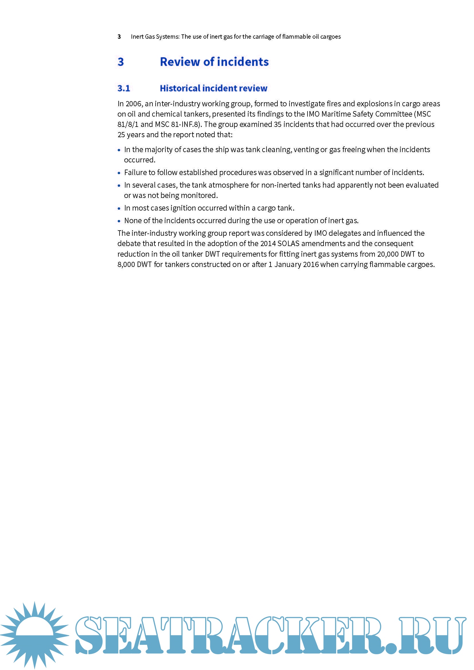 This paper is based on historical incidents involving fires and explosions in the cargo areas on tankers carrying flammable cargoes. The guidance establishes the safety benefits of using inert gas as an effective barrier to prevent cargo tank fires and explosions, regardless of vessel size.