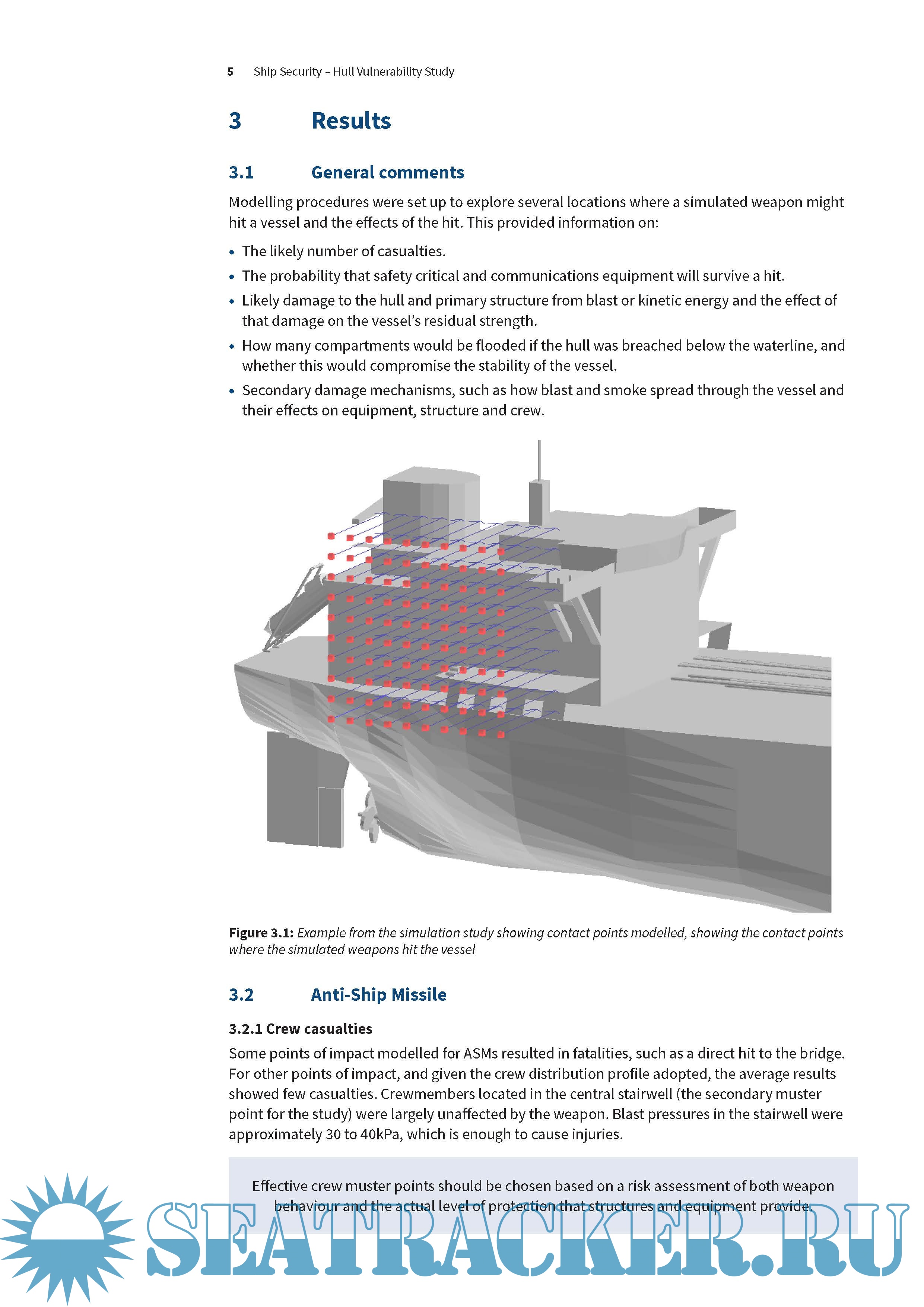 Year: 2019 Language: english Author: OCIMF Genre: Research papers Format: PDF Quality: eBook Pages count: 18 Description: Several OCIMF members recently raised concerns about increasing attacks against vessels from missiles, crafts carrying Improvised Explosive Devices (IEDs) and hand-held Anti-Tank Guided Weapons (ATGWs). Due to regional conflict, new threats emerged in October 2016. Analysis of recent incidents has shown that the stern of the hull is a likely target area, especially on tankers. This information paper has been developed to highlight the results of the study in relation to the protection of crew and vessels. The results can be applied to both existing and new build vessels. OCIMF collaborated with QinetiQ, a multinational defence company, to conduct a computer-based simulation study. The simulations were created by QinetiQ’s Survive tool to investigate the vulnerability of a laden Aframax-size tanker’s hull with the crew at a heightened state of readiness. This type of vessel was chosen for the study because its hull construction is a common tanker form.