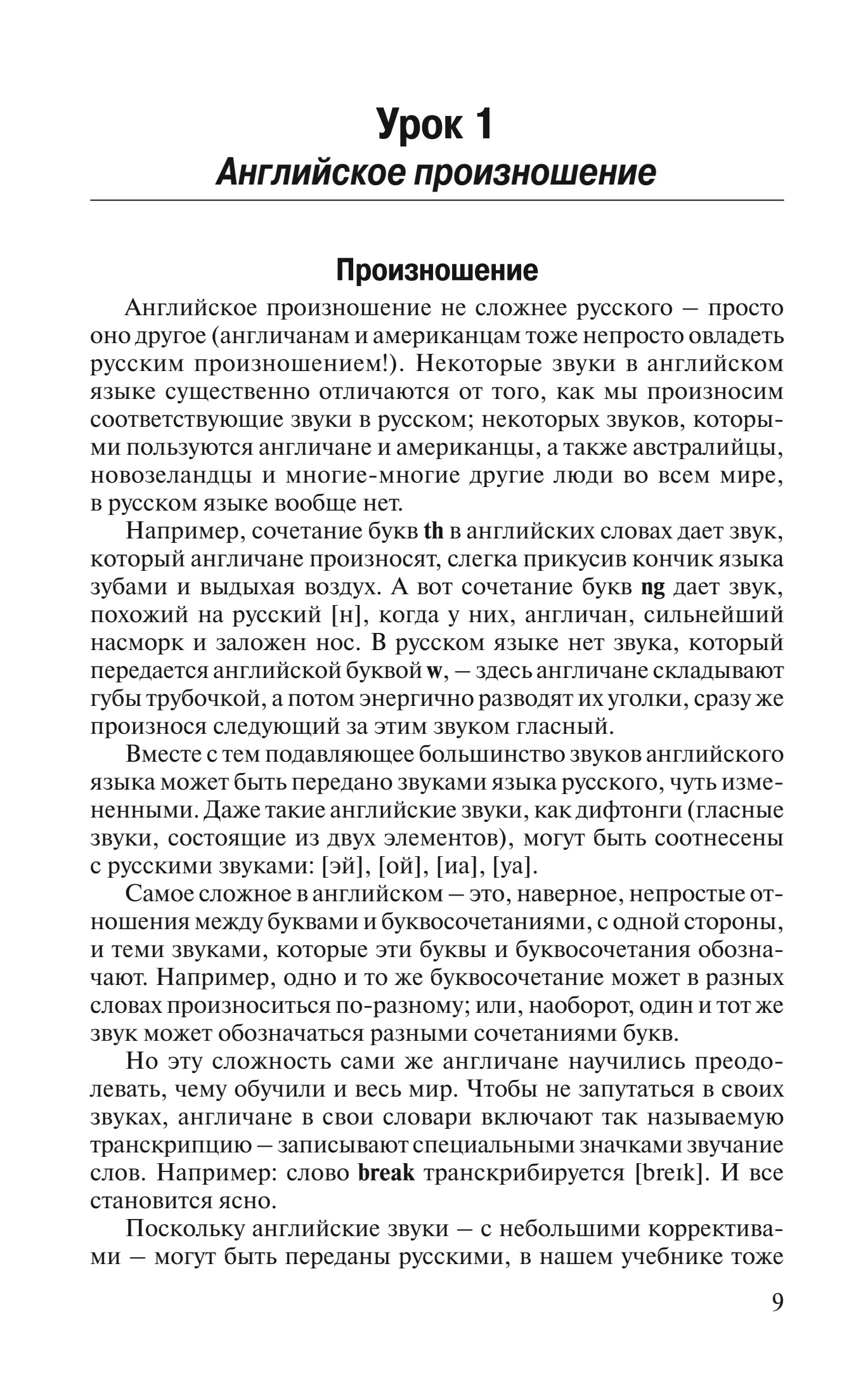 Книга Миловидова В.А., лингвиста и преподавателя, отличается особой компактностью и последовательностью подачи материала. Состоит она из 20 уроков-лекций, которые начинаются с легких тем и лексики, и постепенно усложняются, что позволяет изучать английский язык плавно, не торопясь, и при этом дает возможность овладеть базовым уровнем языка в короткие сроки. Книга также поможет отработать навык устной речи и произношения при помощи представленных в ней диалогов и упражнений, ключ к которым можно найти в конце учебника. Также в самоучителе автор приводит и переводы к текстам лекций, что тоже очень удобно и не требует затрат времени на поиски перевода по словарям. Главное условие для получения качественного результата - это прохождение всех уроков, и тогда базовые знания английского в кратчайшие сроки гарантированы!