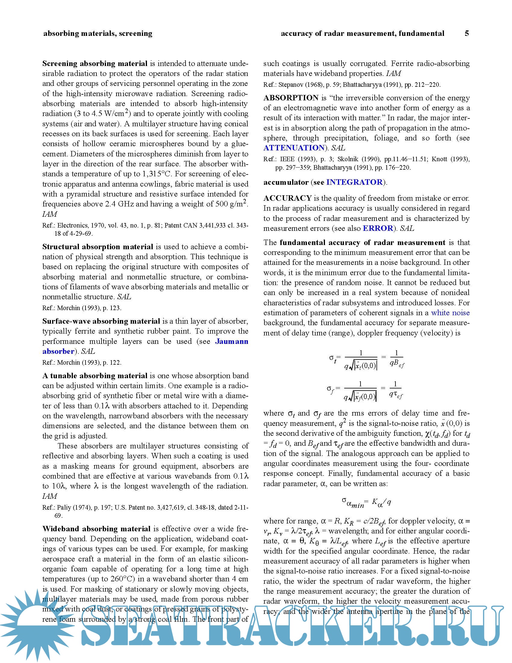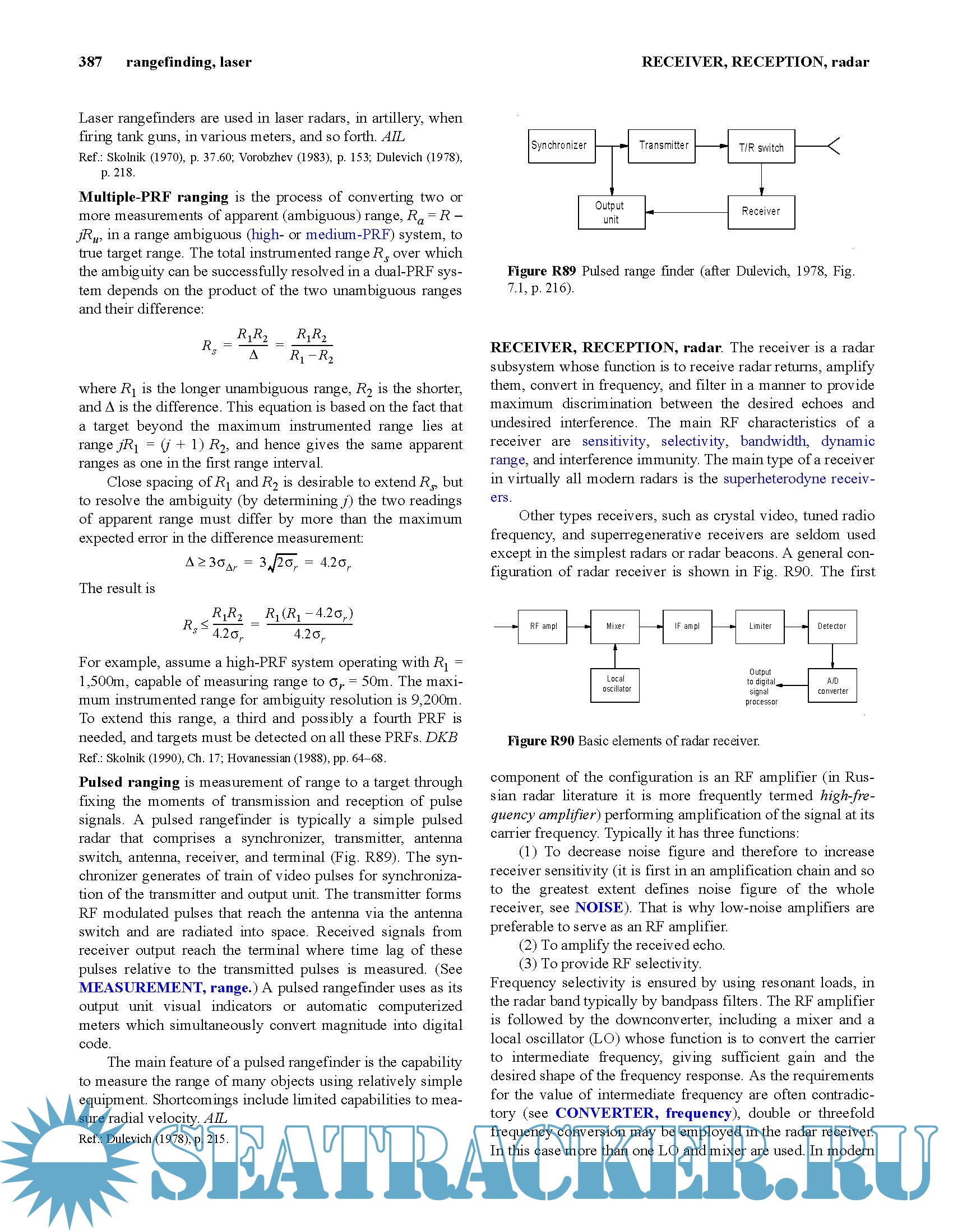 Description: The Radar Technology Encyclopedia is a joint product of leading United States and Russian radar experts with decades of experience on design, development, and test of state-of the-art radar systems and technology. The Encyclopedia covers the entire field of radar fundamentals, design, engineering, systems, subsystems, and major components. It contains about 5000 entries, each giving the depicted term definition, and, if applicable, the standard notation, brief description, evaluation formulas, relevant block diagrams, performance summary, and a reference to the literature in which the more detailed information is available. The purpose is to provide, in a single volume, the reference material for researchers and engineers in radar and related disciplines, representing the most modern information available in both the former Soviet Union and in the West. It includes an extensive bibliography of sources from both regions. This bibliography covers practically all monographs and textbooks in radar and related subjects published after World War II in English (in the U.S.A. and England) and Russian (in the former Soviet Union) languages that covers the overwhelming majority of the worldwide library of radar books.