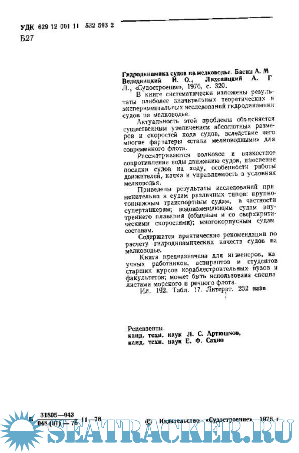 Описание: В книге систематически изложены результаты наиболее значительных теоретических и экспериментальных исследований гидродинамики судов на мелководье.