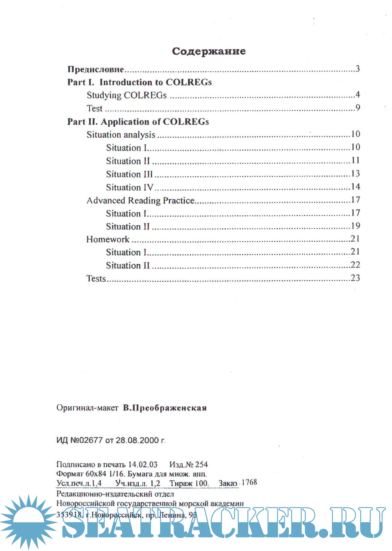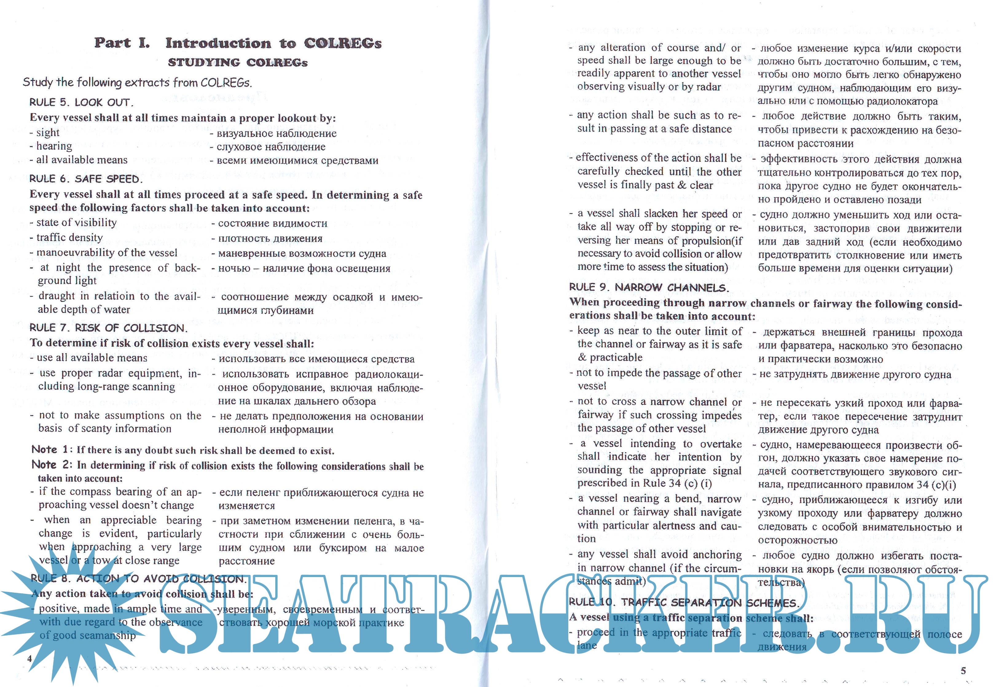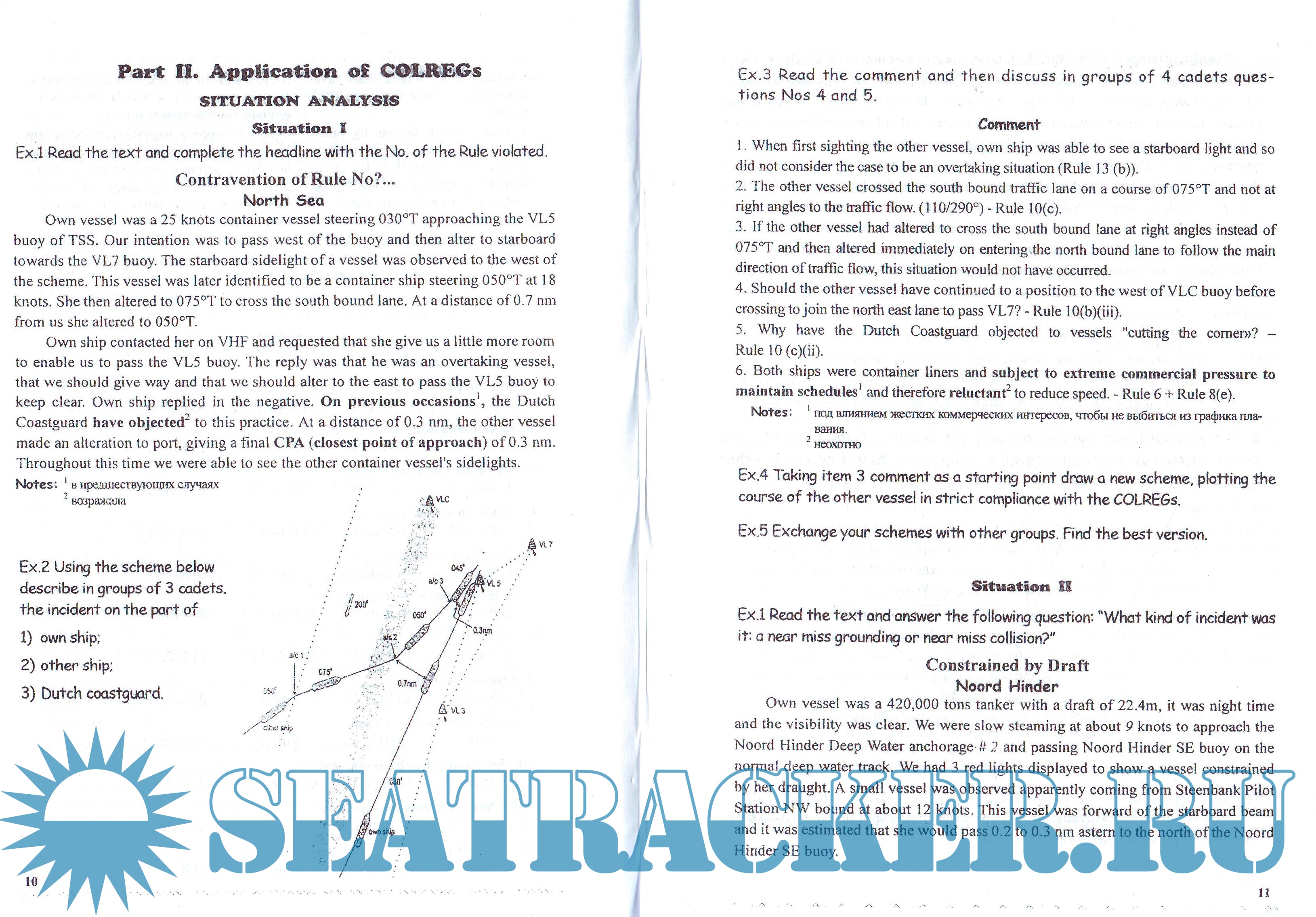 Описание: Учебное пособие предназначено для курсантов судоводительского факультета морских академий, а также судоводителей, желающих приобрести практические разговорные навыки по вопросам предупреждения столкновений судов (МППСС-72) на английском языке.