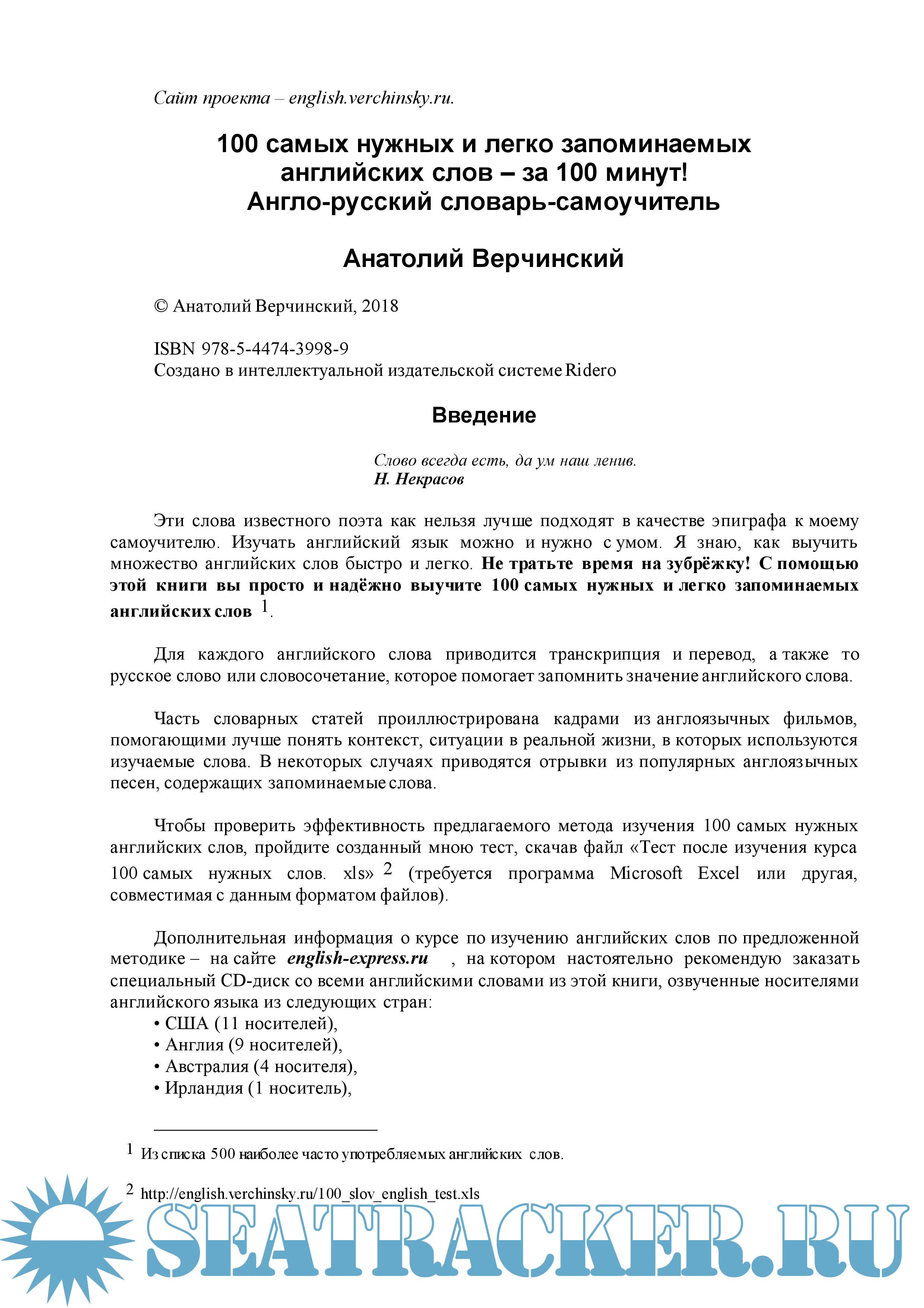 Список книг:1. 100 самых нужных и легко запоминаемых английских слов – за 100 минут!