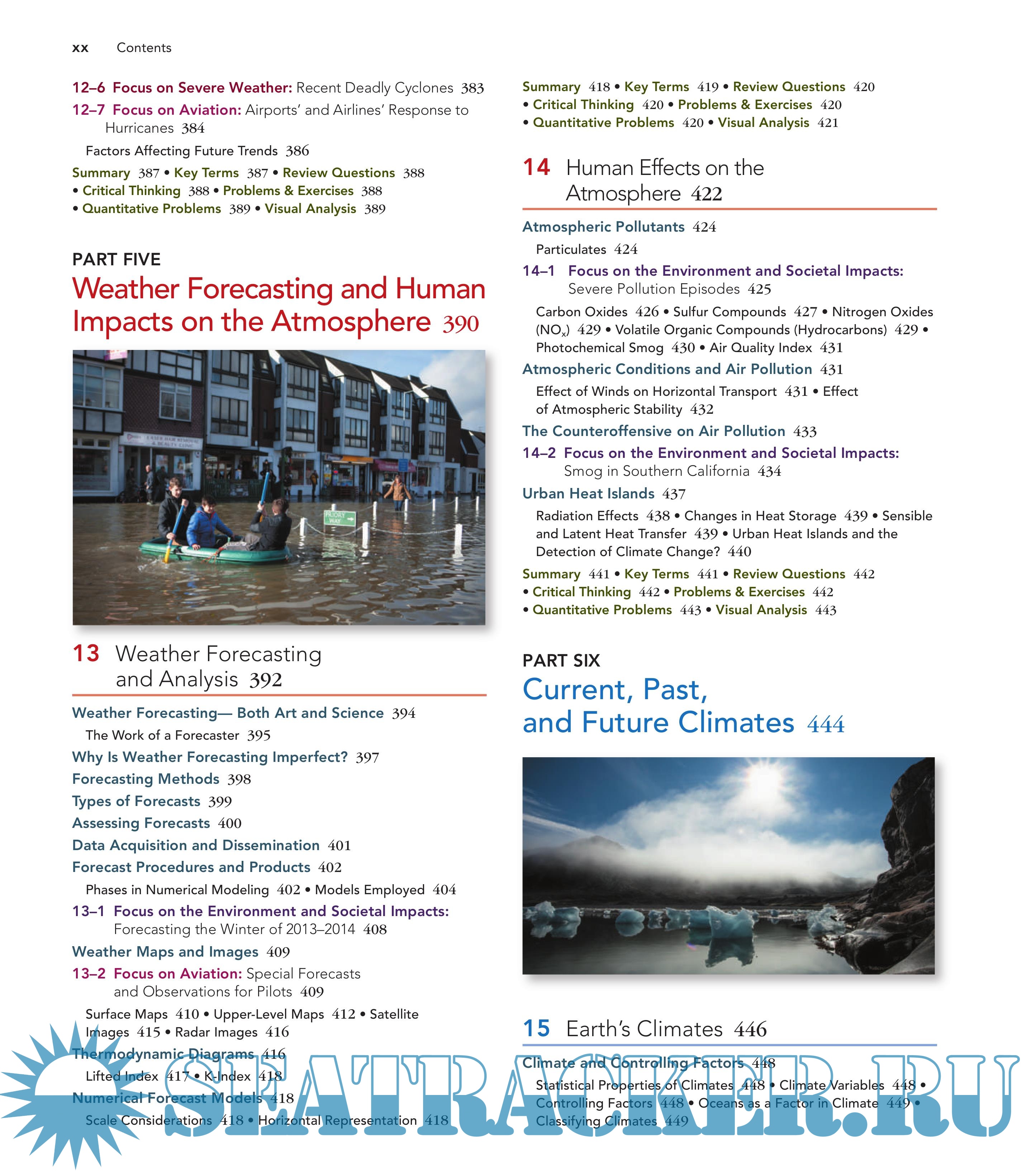 Description: Aguado/Burt’s Understanding Weather and Climate illustrates meteorology and climatology using everyday occurrences and inspired technology tutorials to engage students in learning about atmospheric processes and patterns. The Seventh Edition extends coverage of global climate change with new and unique sections covering oceans and climate in the Earth system. Each chapter also focuses on the human aspect of weather and climate, covering high interest weather-related hazards that draw students into the course, while incorporating the latest science and the most relevant issues.