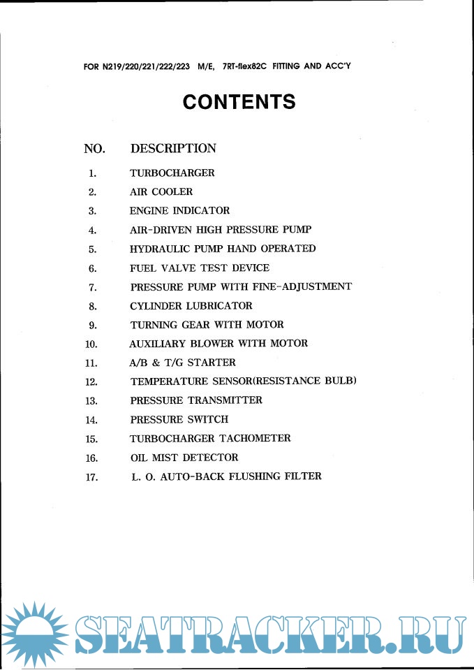 There is set of Instructions and manuals for Wartsila RT-flex82C engine collected t one interactive menu. To start it just open the pdf file START which has interactive buttons for opening necessary manual or instruction.