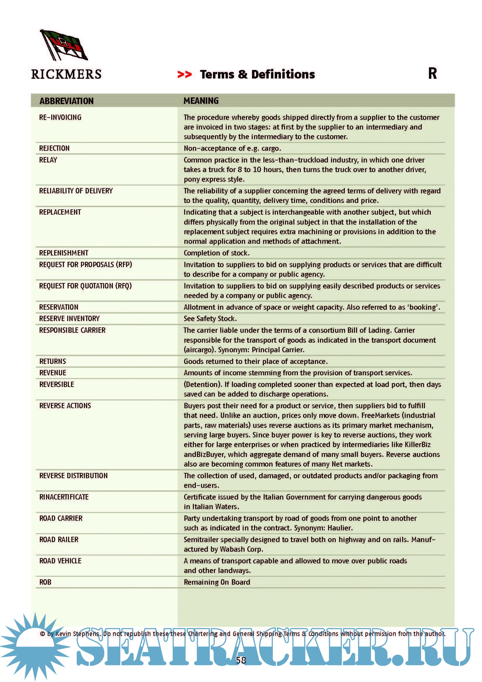 Terms and Definitions about Chartering & Shipping listed in alphabetical order.