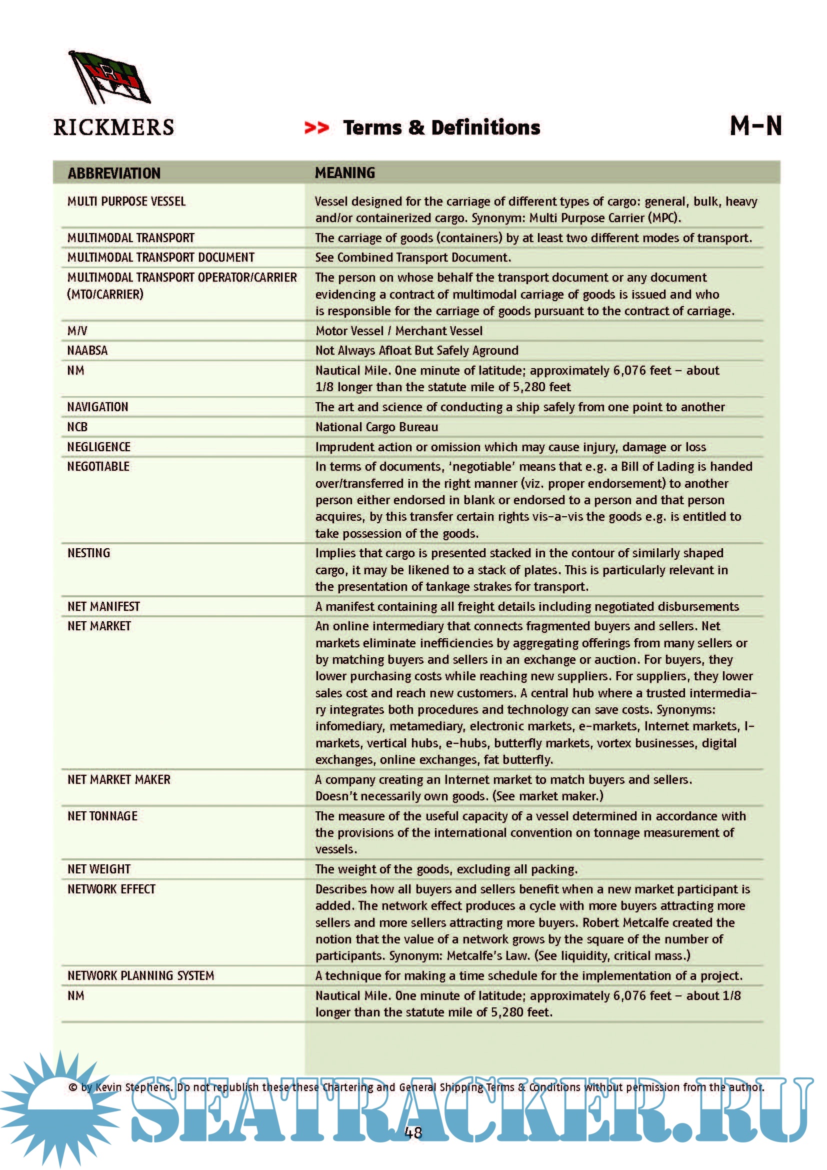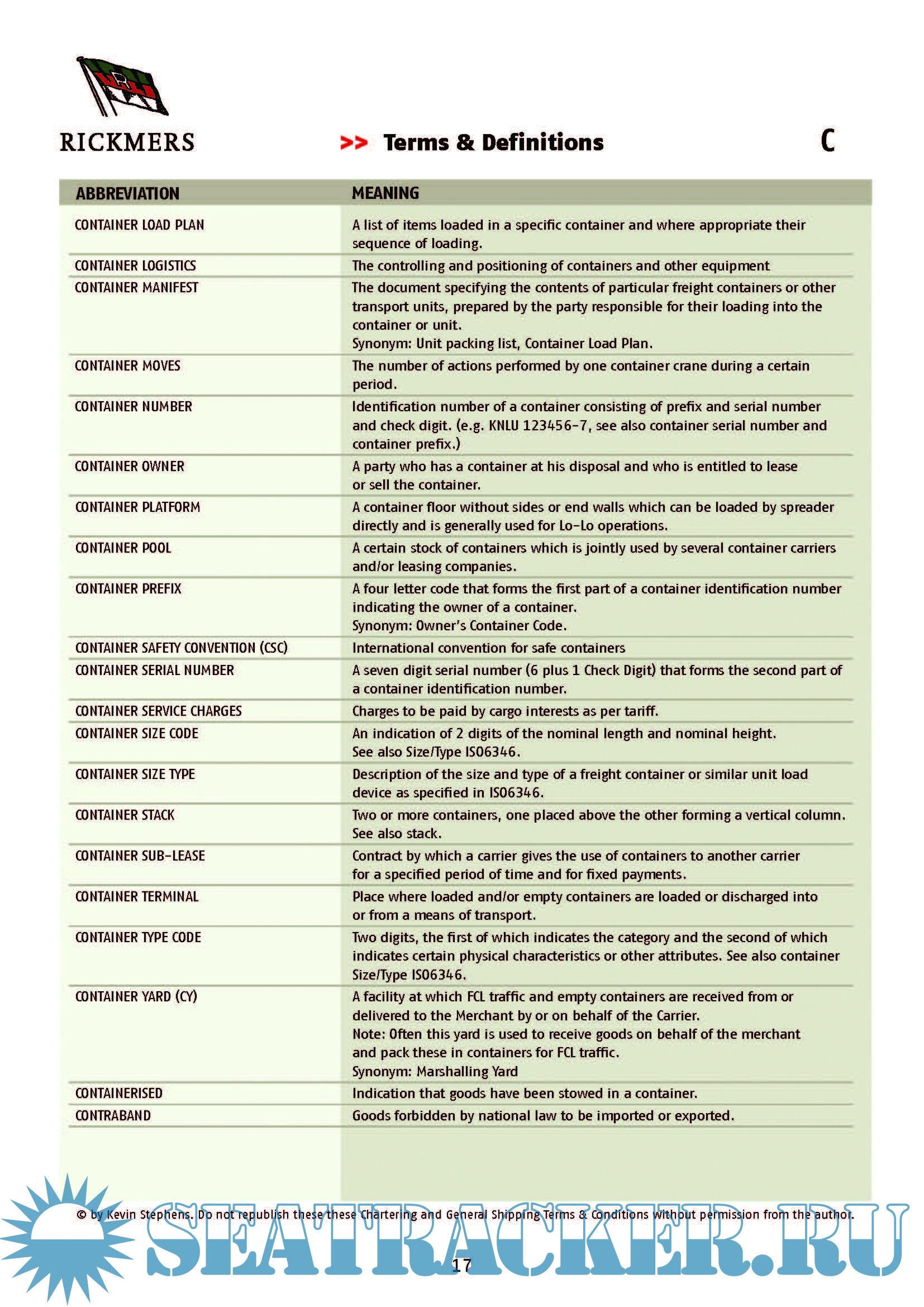 Description: This document contents a non-exhaustive list of frequently used chartering and general shipping abbreviations and their definitions that you may come across from time to time.