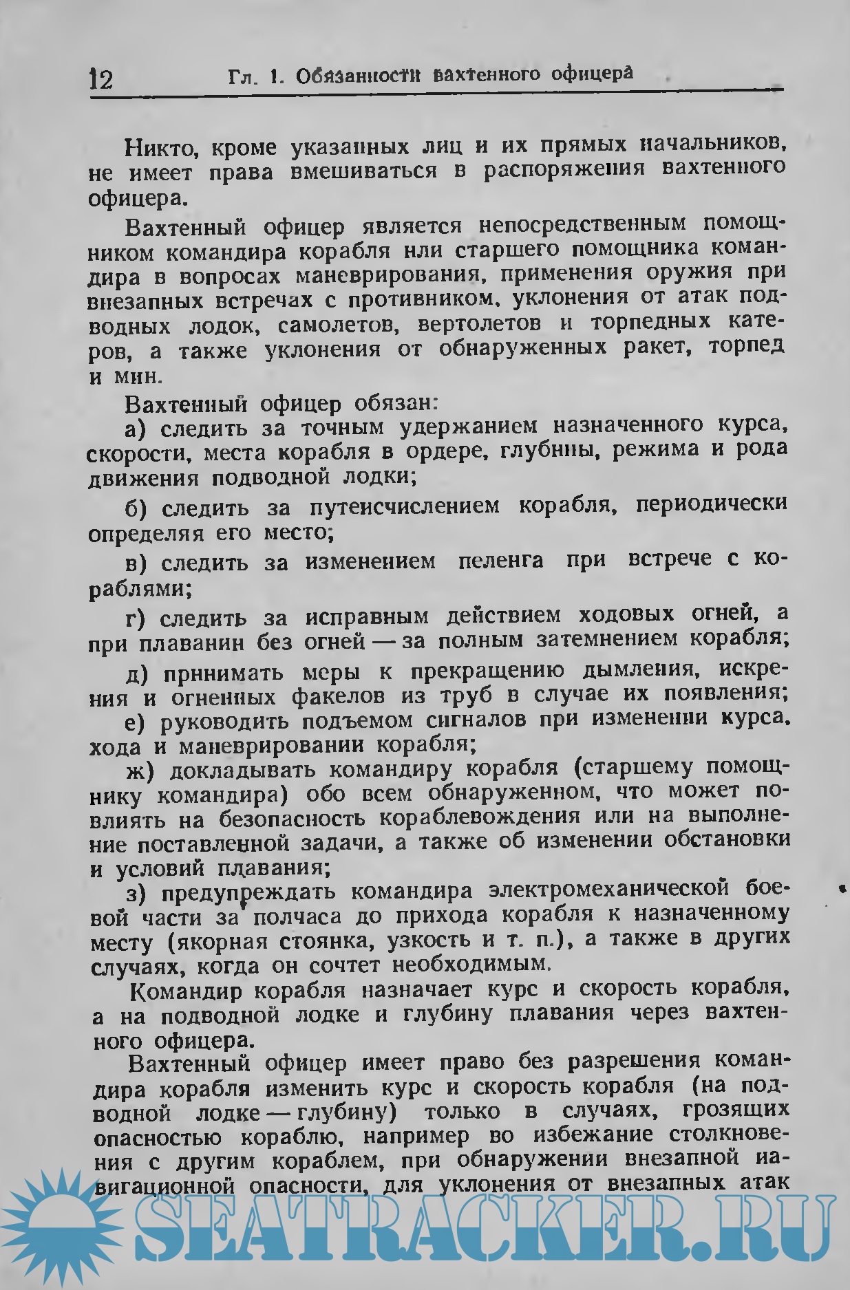 Описание: Вахтенный офицер управляет корабельной вахтенной службой. Личный состав корабля, кроме лиц, которым вахтенный офицер подчинен, обязан исполнять все требования вахтенного офицера.