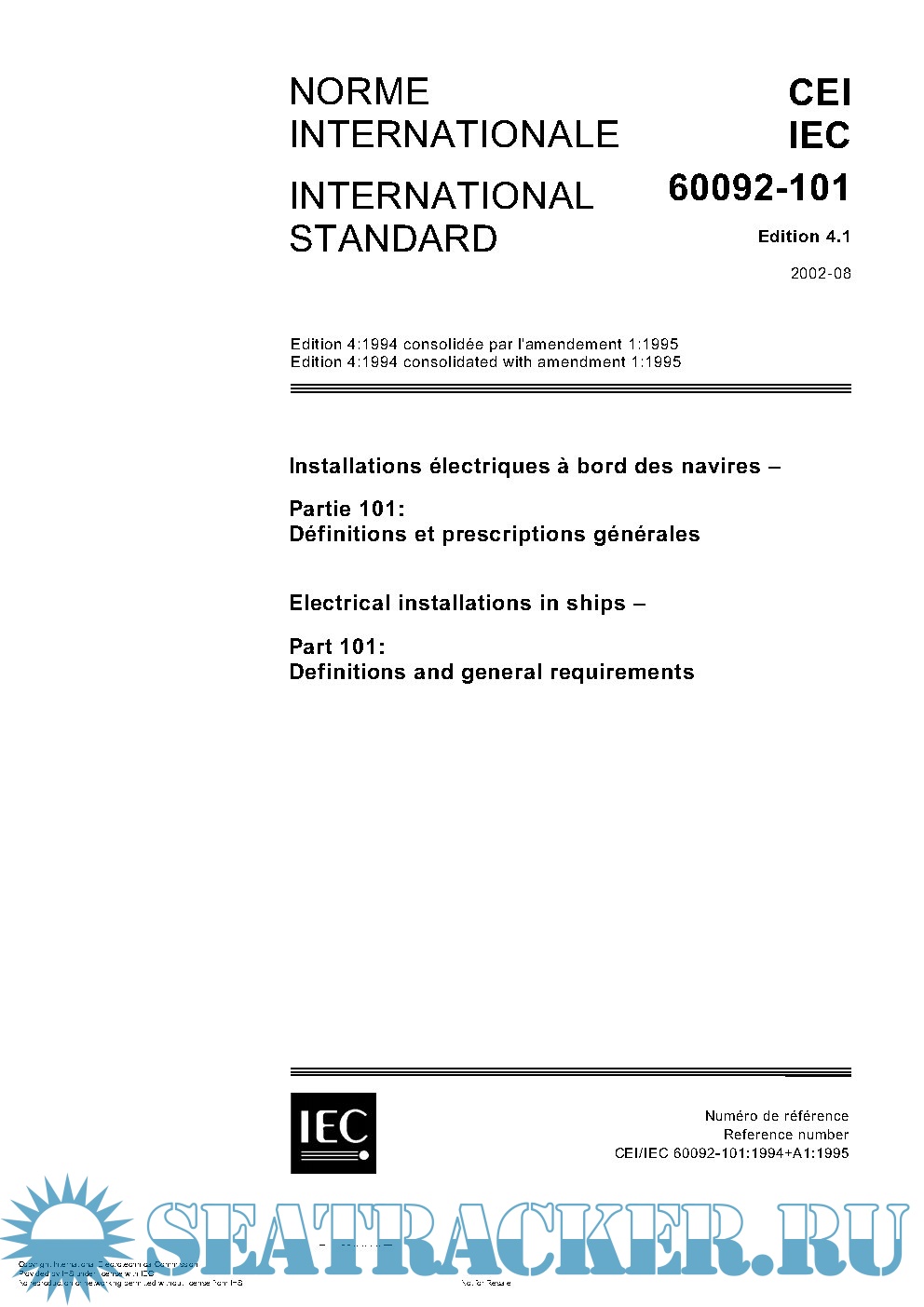 - IEC 60092 Part 101 “Definitions and general requirements”- IEC 60092 Part 201 “System Design – General”