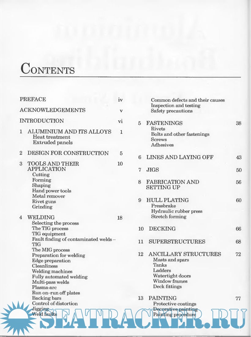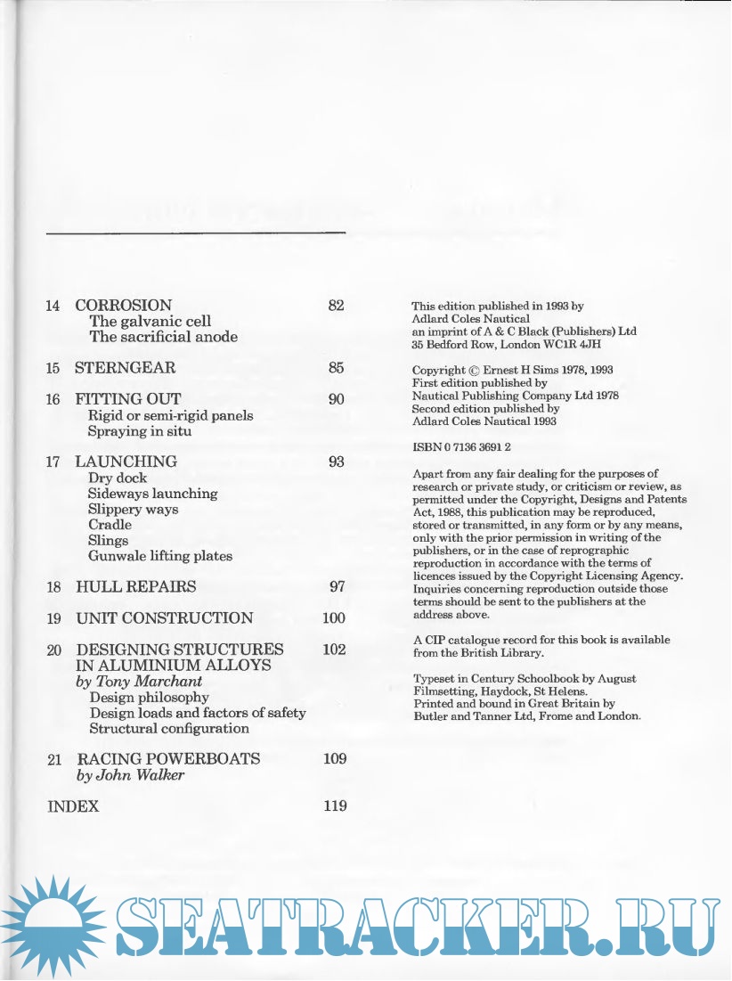 Year: 2000 Language: english Author: Sims Ernest Publisher: Adlard Coles Nautical Edition: Second ISBN: 0-7136-3691-2 Format: PDF Quality: Scanned pages Pages count: 130 Description: This book is an updated version of my previous book Boat building in Aluminium Alloy. Although much of the former edition remains relevant, welding machines and technology have now greatly improved. This makes it possible, once the machine settings have been accurately set, for a less skilled operator to obtain a reasonable quality weld, even though all important welds should, of course, still be entrusted to a coded welder. Anti-foulings have also changed, with TBT no longer being used. A new chapter (Chapter 19) has been added on unit construction. This enables the smaller yard with limited space to build larger vessels, and helps the larger yard to employ more cost effectively more people at a time, thus reducing the time spent on assembly. Finally, in order to broaden the base and make the book more complete, two new chapters, 20 and 21, have been added. Designing Structures in Aluminium Alloys is by Tony Marchant and Racing Powerboats is contributed by John Walker. Tony Marchant has practised for over twenty years as a consultant in the marine industry, during which time he has been involved in the design of structures for many powercraft, fast ferries and sailing yachts. He is a recognised authority on lightweight structures for all types of marine vessels. He is a Director of the marine consultancy - Associated and Marine Technology. John Walker worked with me as Team Manager for Enfield Racing. More recently he has been involved in building racing and fast power craft in GRP, FRP and aluminium with Cougar. He has charted powerboat racing as a competitor and journalist, currently for Motorboats Monthly, and is a director of the technical consultancy - Associated and Marine Technology.