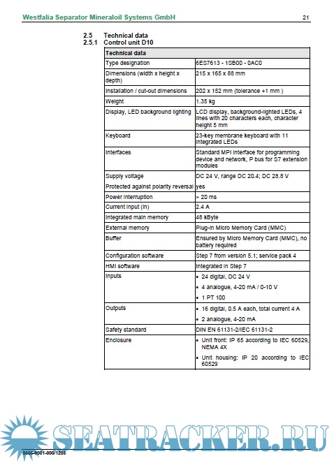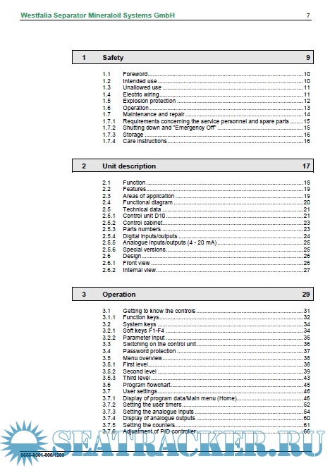 Description: Purifier Westfalia D10 operation instructions