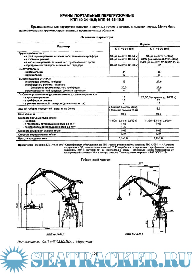 В каталоге представлены краны мостовые, козловые, башенные, консольные, а также судовые и портовые.