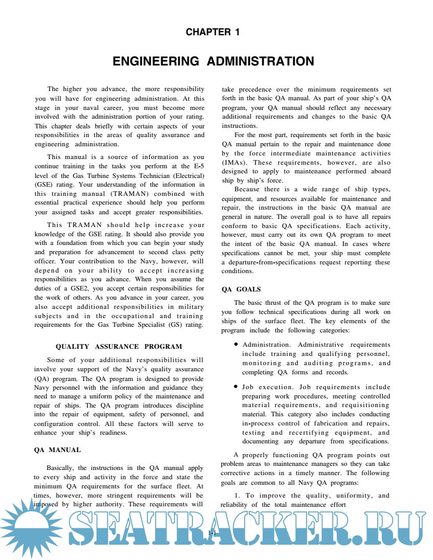 COURSE OVERVIEW: In completing this nonresident training course, you will demonstrate a knowledge of the subject matter by correctly answering questions on the following: engineering administration; uninterrupted power supply systems; engineering control system operations; engineering support systems maintenance; electrical and electronic systems maintenance; pressure, temperature, and