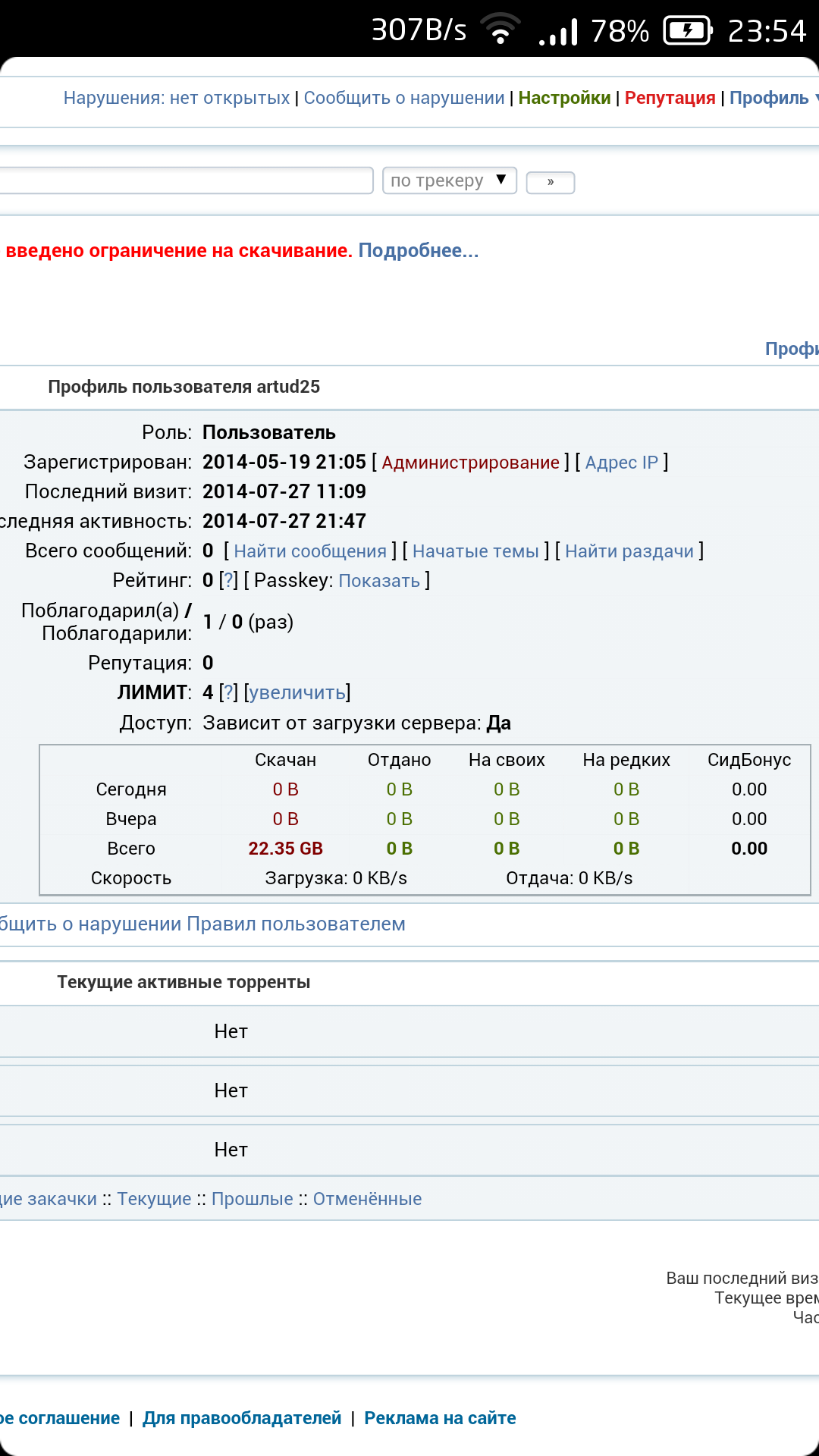 Важно:Исчерпав лимит в 10 скачиваний, вы сможете качать не более одной раздачи в сутки (как на kinozal.tv), обновление лимитов после 23:59.