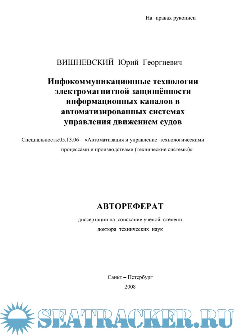 Инфокоммуникационные технологии электромагнитной защищённости информационных каналов в автоматизированных системах управления движением судов