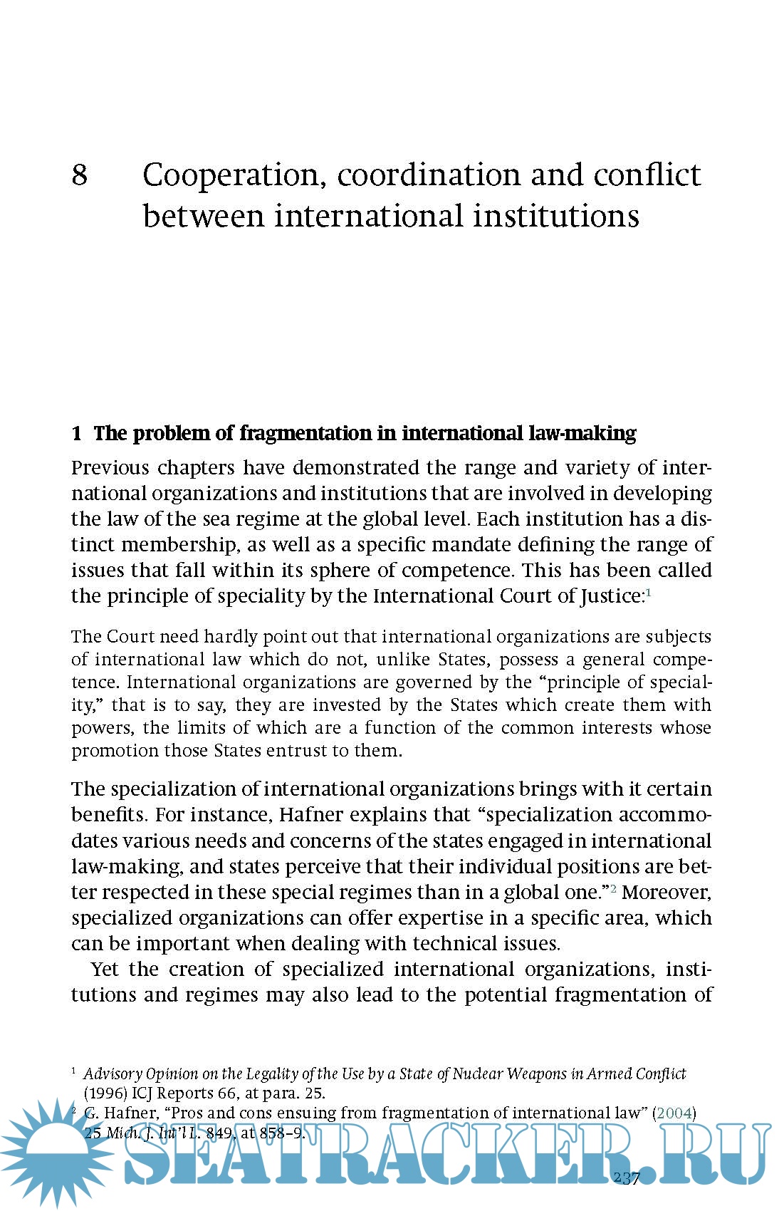 Year: 2011 Language: english Author: James Harrison Genre: Handbook Publisher: Cambridge University Press Edition: 1st ISBN: 978-0-521-19817-2 Format: PDF Quality: eBook Pages count: 342 Description: The law of the sea is an important area of international law that must be able to adapt to the changing needs of the international community. Making the Law of the Sea examines how various international organizations have contributed to the development of this law and what kinds of instruments and law-making techniques have been used. Each chapter considers a different international institution – including the International Maritime Organization and the United Nations – and analyses its functions and powers. Important questions are posed about the law-making process, including what actors are involved and what procedures are followed. Potential problems for the development of the law of the sea are considered and solutions are proposed. In particular, James Harrison explores and evaluates the current methods employed by international institutions to coordinate their law-making activities in order to overcome fragmentation of the law-making process.