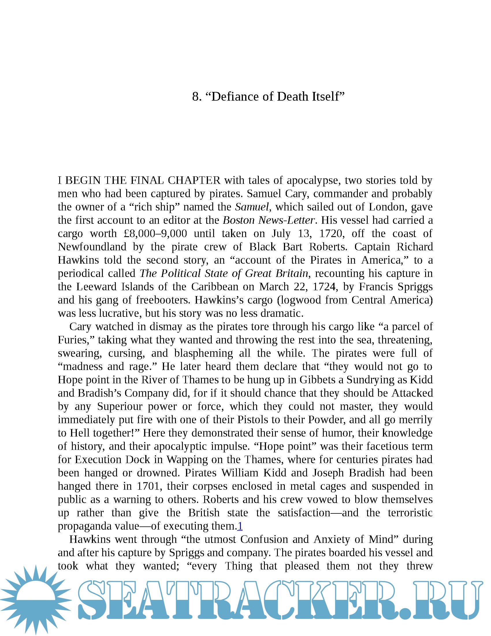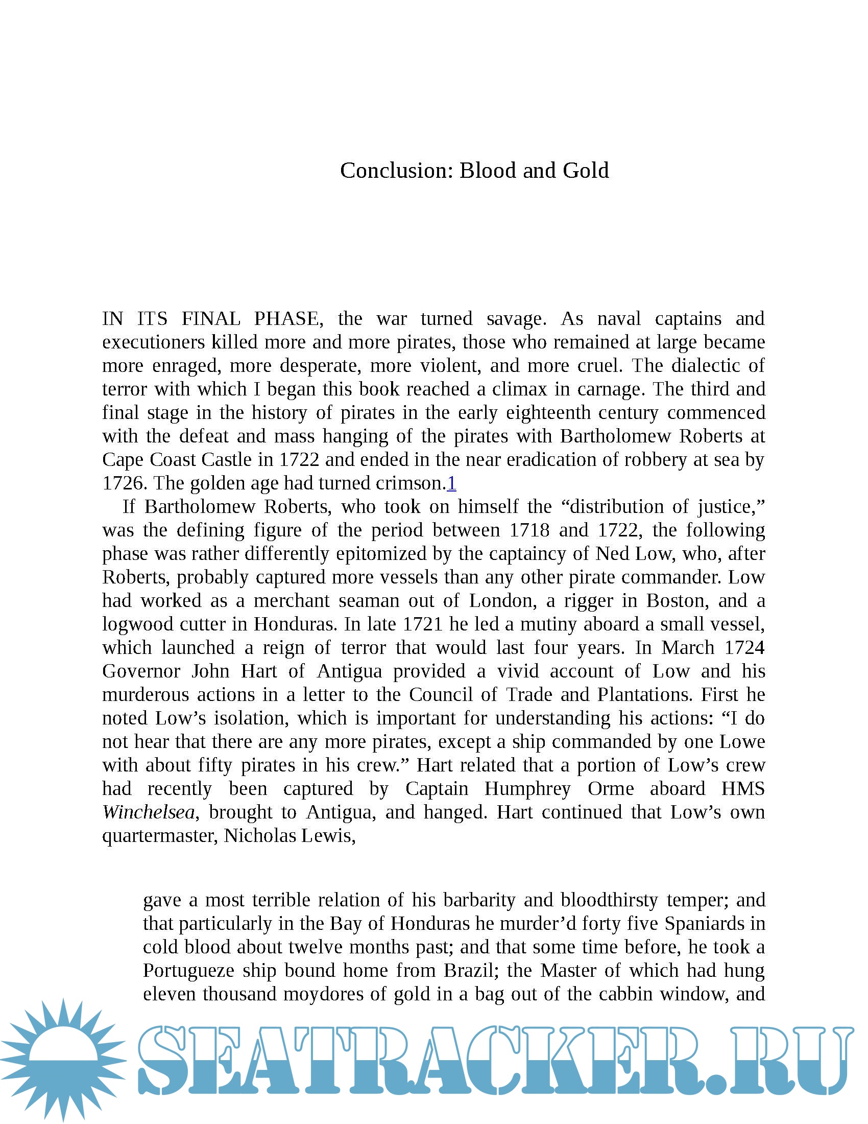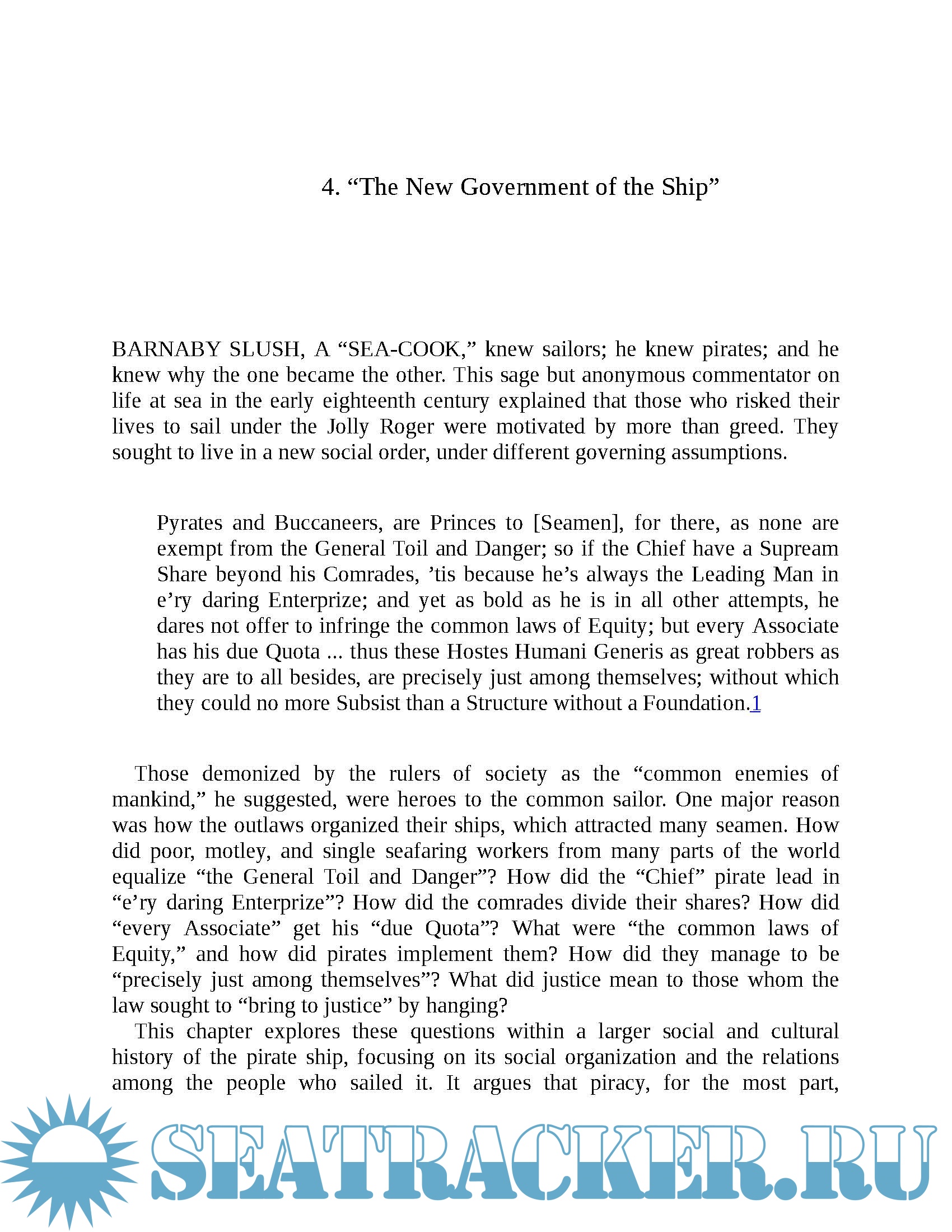 Rediker introduces us to the dreaded black flag, the Jolly Roger; swashbuckling figures such as Edward Teach, better known as Blackbeard; and the unnamed, unlimbed pirate who was likely Robert Louis Stevenson's model for Long John Silver in Treasure Island.
