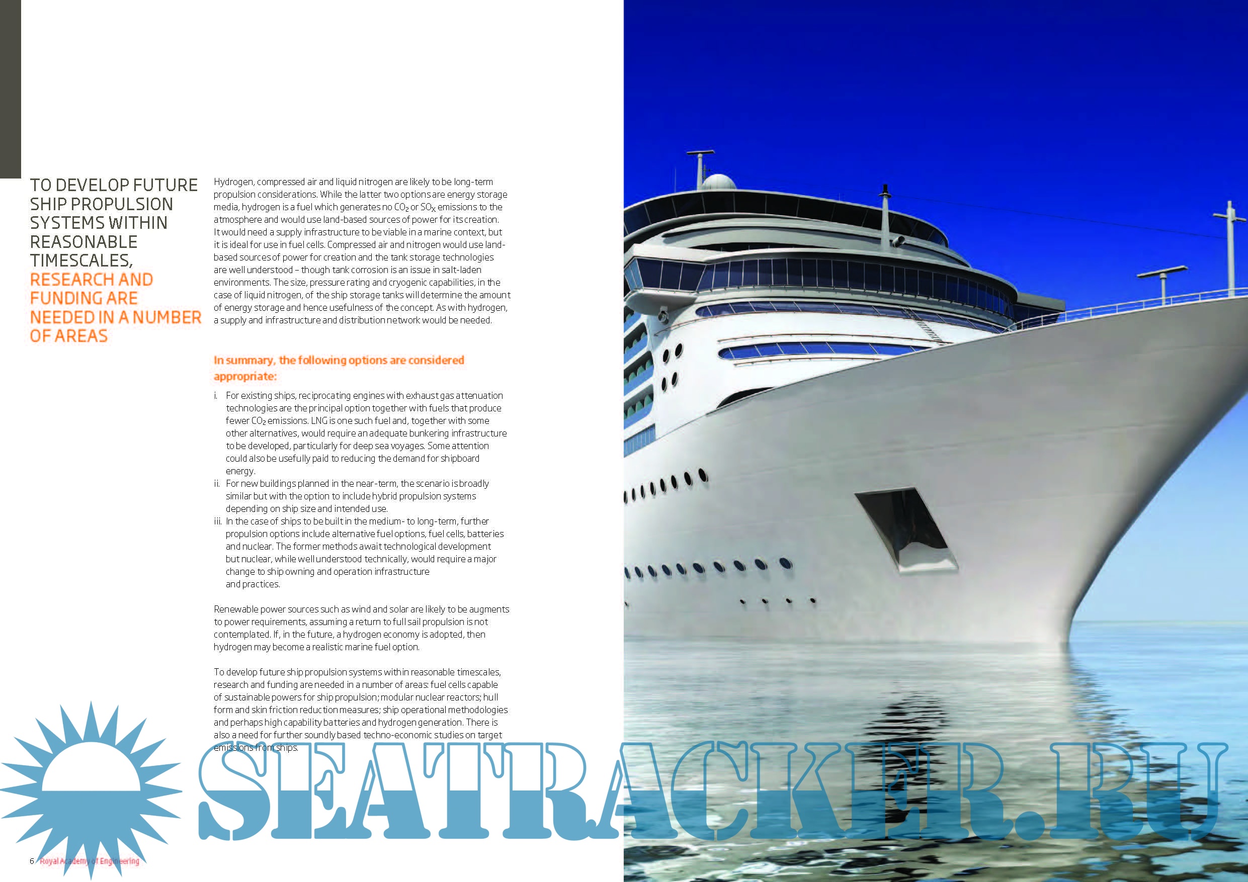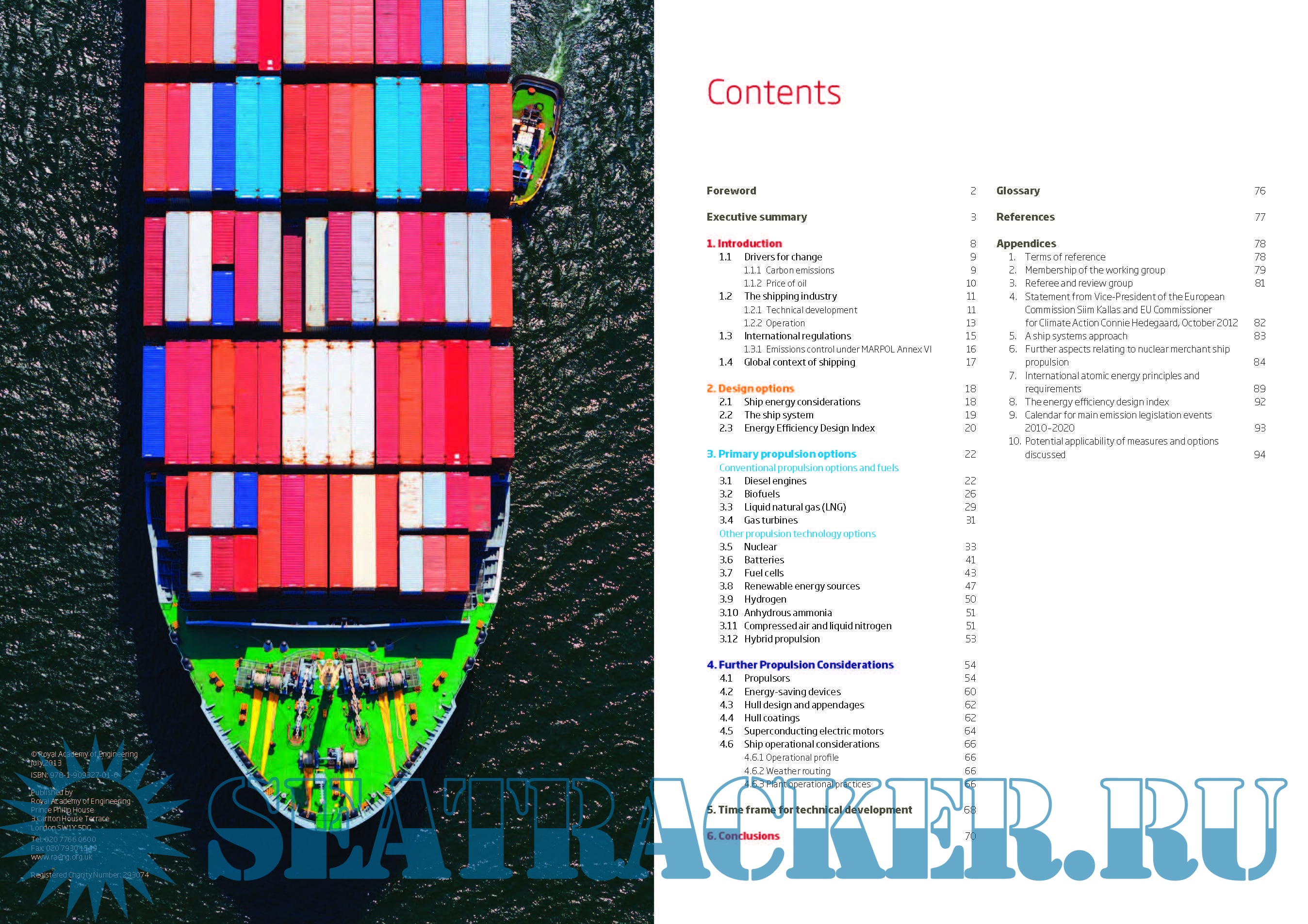 Description: The Royal Academy of Engineering working party of more than 20 eminent engineering experts, led by John Carlton FREng, Professor of Marine Engineering at City University London, made a comprehensive survey of current and potential future marine propulsion systems, measuring them against the twin but related objectives of energy efficiency and environmental sustainability. Options investigated included greater use of LNG (liquefied natural gas) in current power units, battery and alternative fuel technologies, and nuclear-powered ships.