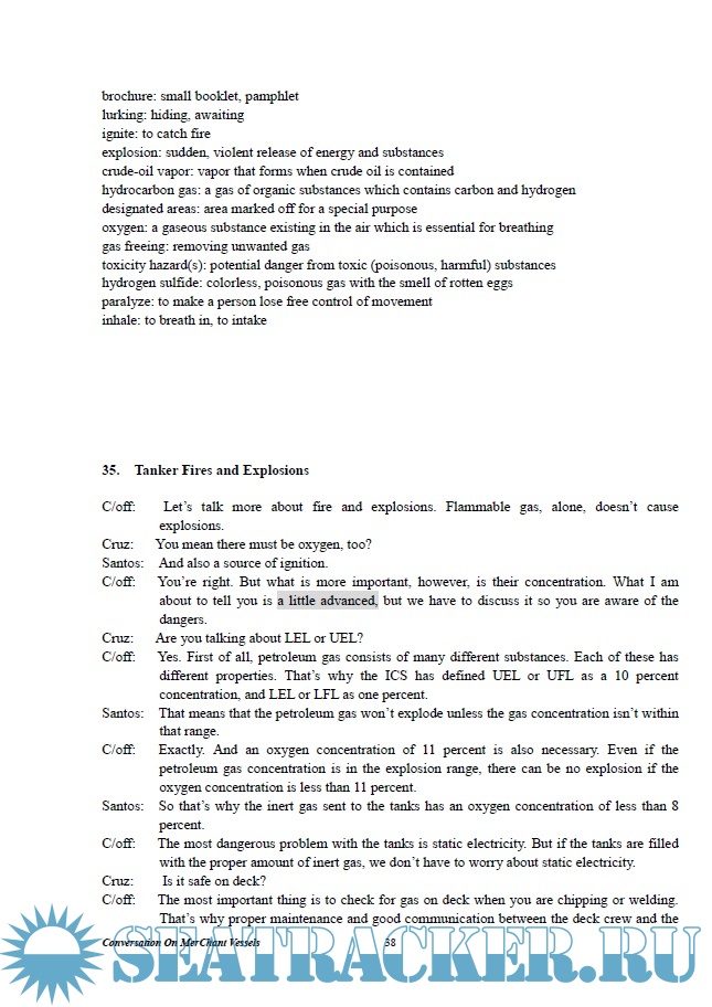 Year: 201? Language: english Author: Unknown Genre: Textbook Publisher: ? Format: PDF Quality: eBook Pages count: 115 Description: Welcome on Board! Conversations on Merchant Vessels recreates various situations that seamen often encounter on board merchant ships, plus some scenes that take place on shore. Each situation is selected for the purpose of familiarizing seamen with the realities of their life, while learning English, which is the universal language of navigation. By practicing the conversations, notes and keywords, you can experience, first hand, realistic developments that occur on board merchant vessels. The conversations also include some practical advise on seamen’s life, actual navigational operations, realistic descriptions of ship-bound equipment and navigation techniques. The level of English increases gradually as the story unfolds. In the first few chapters, conversations are general with simple vocabulary and grammatical structure. These language elements become slightly more difficult as you progress. However, you needn’t worry. Most of the difficult words and technical terms are explained in simple English in the <Notes> that appear below each conversation. These terms, or keywords, are clearly marked with red ink in the text. Now you need not consult a dictionary each time you encounter an unknown word! In order to help you learn the accurate pronunciation, intonation and rhythm, which are all important aspects of language learning, four compact disks (CDs) are provided for you. Close-to-real depiction and enactment of each scene has been created through the voice talents of Bianca Allen, Dennis Falt, Michael Naishtut, Greg Irwin and other professional voice actors and narrators. So just sit back and enjoy the 115 dramatized scenes that you are likely to encounter on board a merchant ship. Now, listen to the CDs first and read the textbook later. Of, if you prefer, listen as your eyes trail on the text. However you study, remember that the best way of mastering a language is by hearing and repeating. Just like a baby picking up its mother tongue, listen to the sounds of English over and over and repeat them. Then study with the textbook and review the Notes. Lastly, all the members of the editorial staff wish each one of you the best of luck in sailing across the world while learning English. Have a safe and enjoyable journey! Bon voyage!