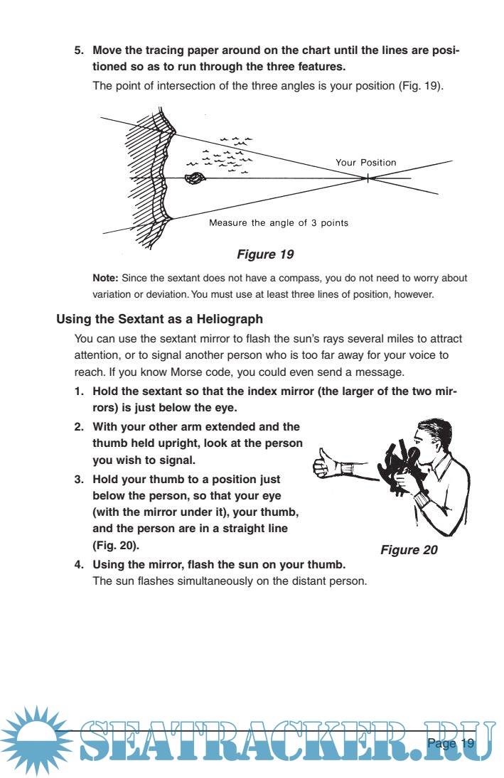 - Using Your Davis Sextant; - Operating the Sextant; - Finding the Altitude of the Sun using the Sextant; - Using Sextant Readings to Calculate Locations; - Other uses for the Sextant; - Reference.