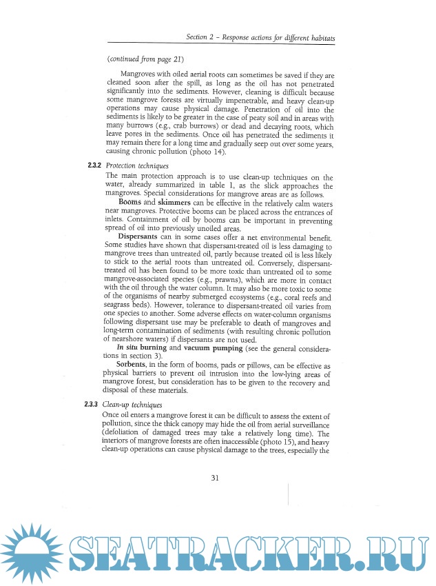 Year: 1997 Language: english Author: IMO Genre: Handbook Publisher: IMO ISBN: 9789280114201 Format: PDF Quality: Scanned pages Pages count: 54 Description: This extensively illustrated field guide is directed towards those who have to respond to oil spills in tropical marine waters. It aims to provide information and general guidance on the response measures to be taken (and on those to be avoided) for the different types of tropical habitat. Background information is given on the fate of spilled oil, characteristics of the different marine habitats and suitable techniques to use to respond to oil spills. The principles of spill response described in this guide are based on case histories and on experiments that have been reported in the scientific literature.