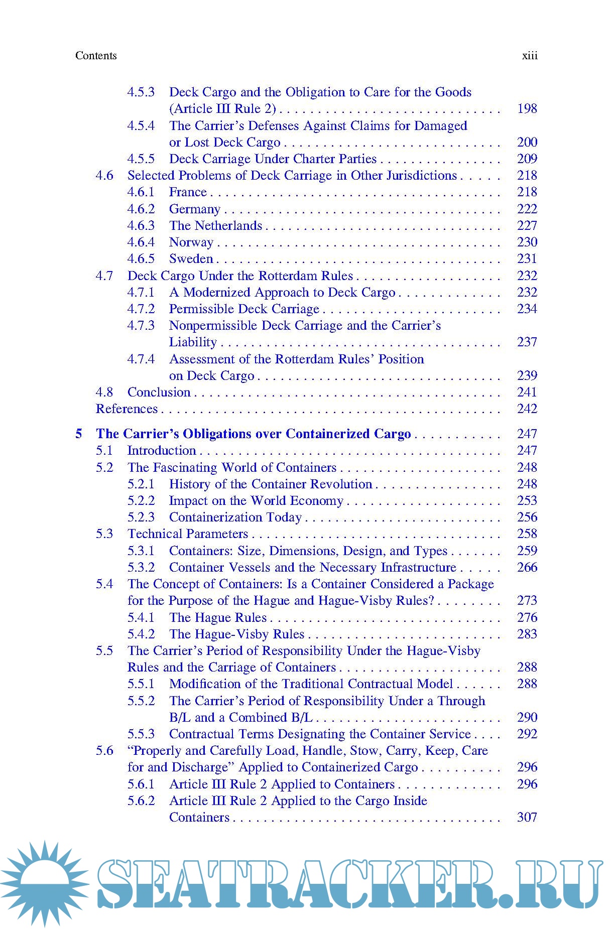 Year: 2017 Language: english Author: Ilian Djadjev Genre: Handbook Publisher: Springer ISBN: 978-3319624402 Format: PDF Quality: eBook Pages count: 343 Description: This book addresses the legal and contractual obligations of sea carriers regarding due care for the cargo under a contract of carriage. While the general framework employed is the leading international liability regime, the Hague-Visby Rules, the discussions in each chapter also account for the possible future adoption of a new regime, the Rotterdam Rules. The subject matter concerns the standard for the duty of care for goods as codified in the Hague-Visby Rules, but the work also touches upon a wide range of related topics found both in law and in practice, providing valuable commercial, technical and historical links as well as various solutions that have been found at the national and international level to address challenges arising in this specialised area of law. The book is divided into six chapters, which gradually reveal the complexity of the topic. Chapter 1 provides a thorough introduction to the two main transport documents in use, and to the basic logic behind shipping, sea-going trade and related national and international legislation. In turn, Chapter 2 presents an overview of the relevant provisions of the Hague-Visby Rules. Chapters 3, 4 and 5 examine the problems arising out of the insertion of a FIOS(T) clause in the contract of carriage; the carriage of goods on deck; and the carriage of goods in containers, respectively. Lastly, Chapter 6 provides an overall conclusion on the legal status quo and current practice, as well as future prospects. The book was written with a number of potential readers in mind and is intended to open up the topic to a broader audience. It is suitable both for readers who wish to advance their learning (e.g. professionals, practitioners and postgraduates) and for readers with little or no prior knowledge of the topic (e.g. students and researchers).