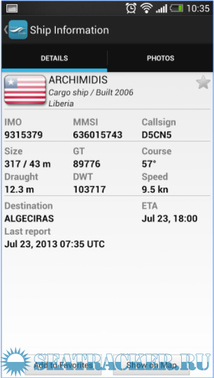 VesselFinder features include: