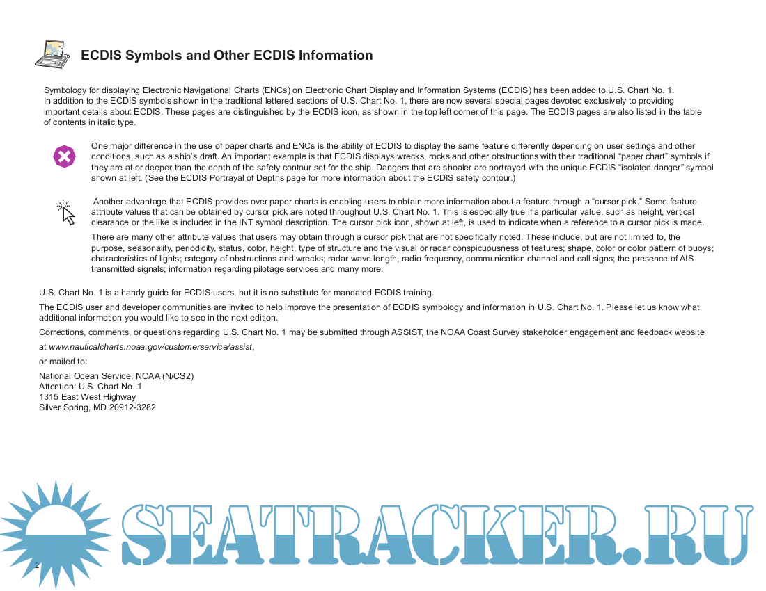 U.S. Chart No. 1 presents two types of symbology used for marine navigation – the symbols used on paper nautical charts (and their digital raster image equivalents) and the corresponding symbols used to portray Electronic Navigational Chart (ENC) data on Electronic Chart Display and Information Systems (ECDIS).