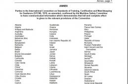 Parties to the International Convention on Standards of Training, Certification and Watchkeeping for Seafarers (STCW), 1978, as amended, confirmed by the Maritime Safety Committee to have communicated information which demonstrates that full and complete effect is given to the relevant provisions of the Convention