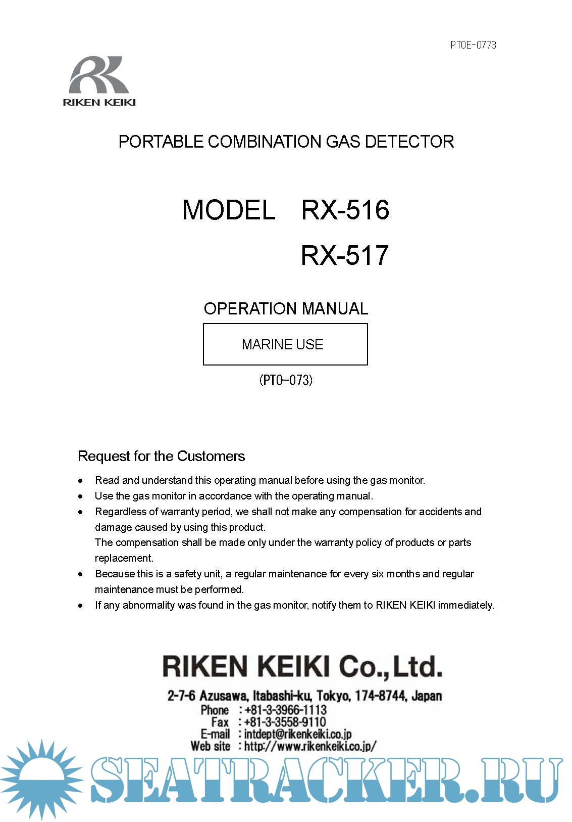 Description: This download contains the Riken Keiki Portable Multi Gas Monitoring Manuals. For a complete list refer to contents.