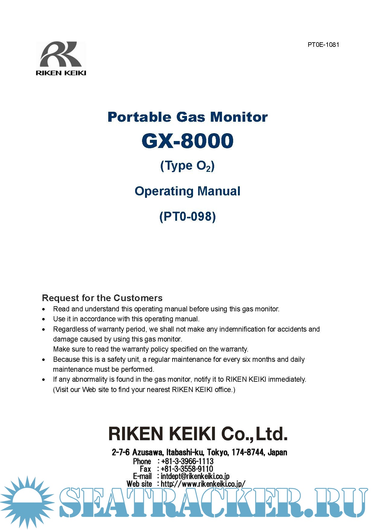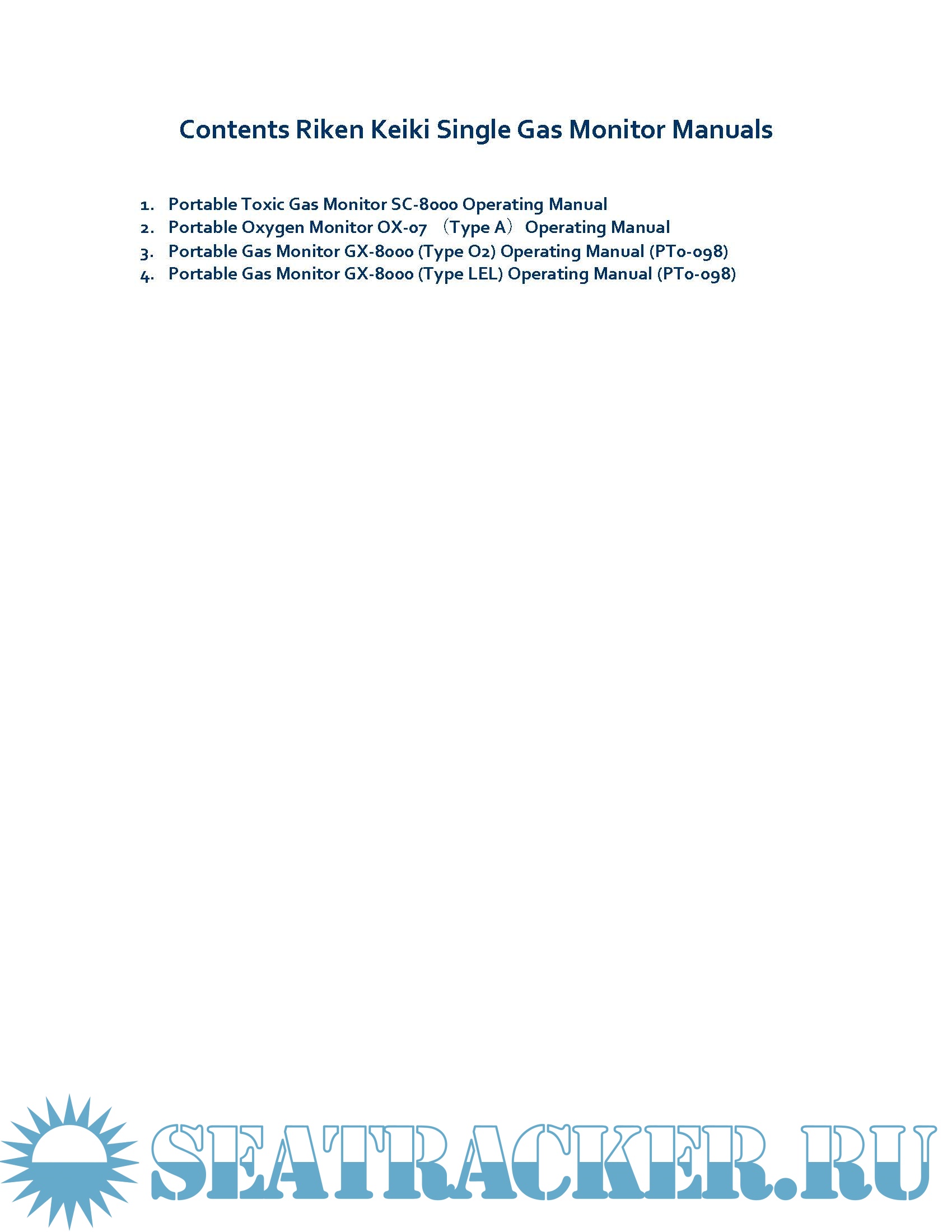 Description: This download contains the Riken Keiki Single Gas Monitor Manuals. For a complete list refer to contents.
