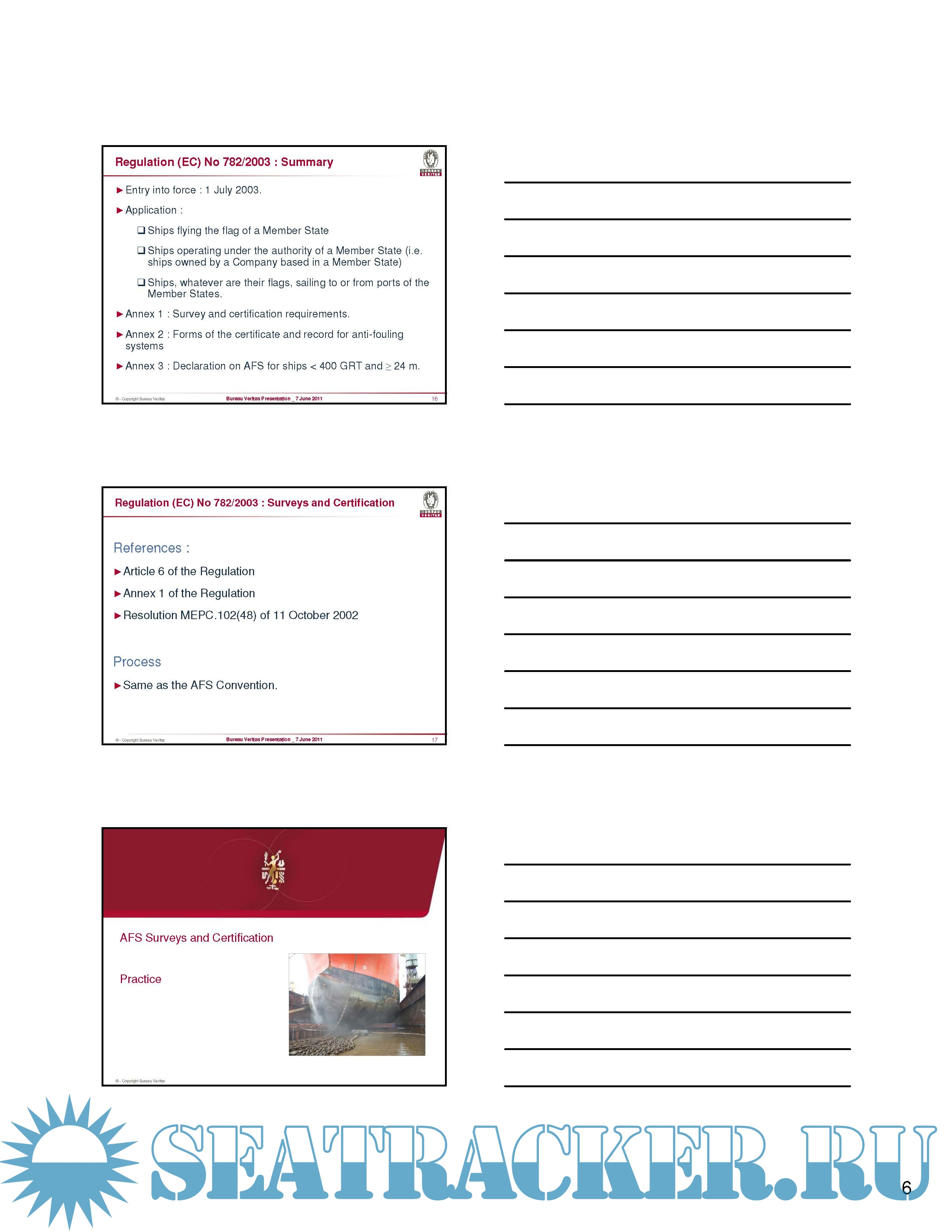 International Convention on the Control of Harmful Anti-Fouling Systems on Ships, AFS Convention, 2001 + IMO Anti-fouling systems 2002 + BV 2011 Presentation AFS Convention, 2001 Surveys and Certification
