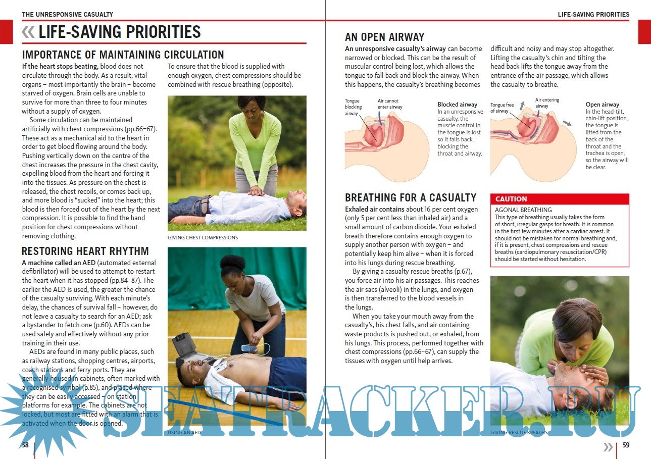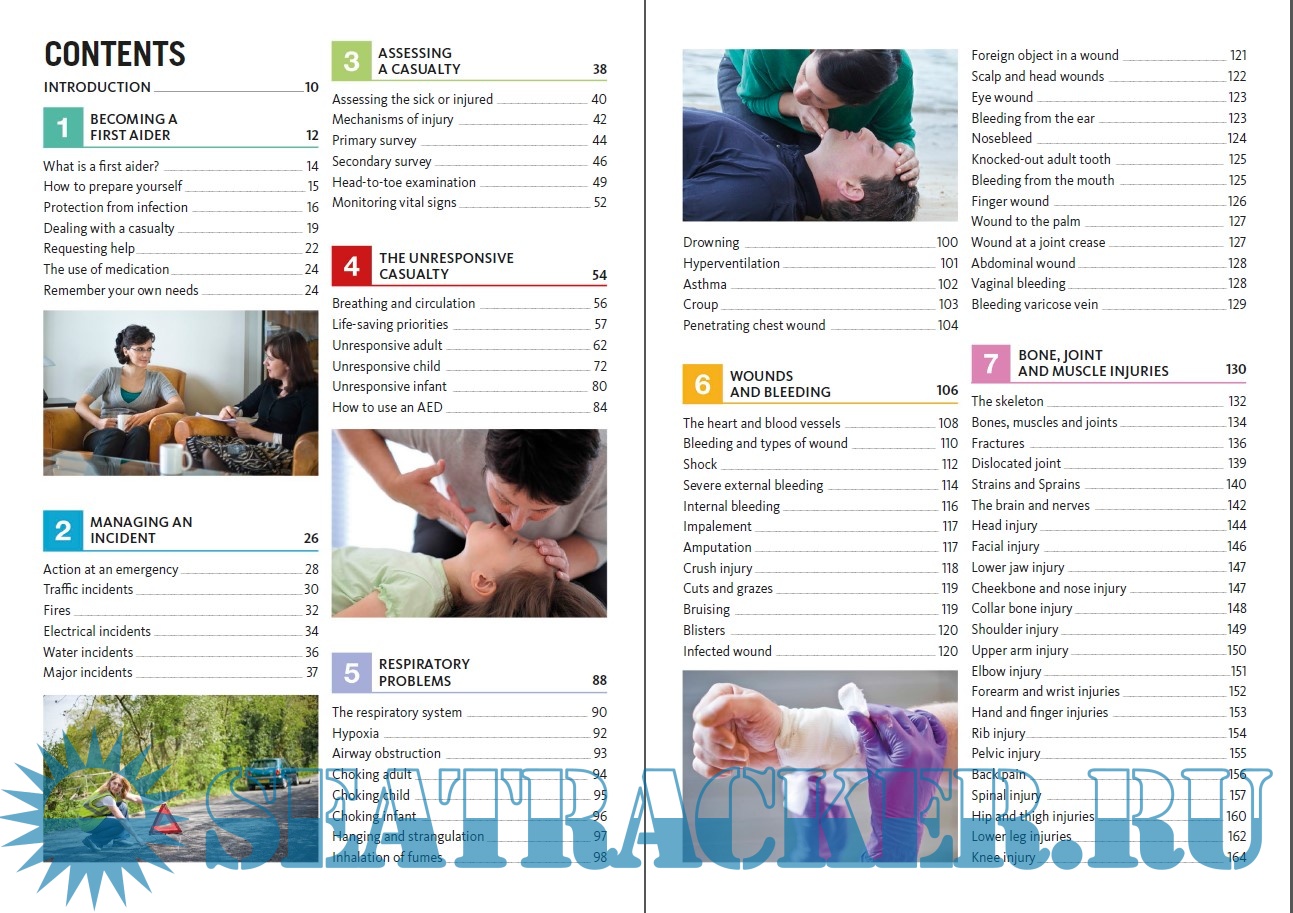 Year: 2016 Language: english Author: British Red Cross, St John Ambulance and St Andrew's Ambulance Association Genre: Manual Publisher: Dorling Kindersley Edition: 10th (Revised) ISBN: 978-0-2412-4123-3 Format: PDF Quality: eBook Pages count: 290 Description: This publication, now in its revised 10th edition, is the authorised manual of the First Aid Societies – St John Ambulance, St Andrew’s First Aid and the British Red Cross. Together, they have endeavoured to ensure that this manual reflects the relevant guidance from informed authoritative sources, current at the time of publication. While the material contained here provides guidance on initial care and treatment, it must not be regarded as a substitute for medical advice. The First Aid Societies do not accept responsibility for any claims arising from the use of this manual when the guidelines have not been followed. First aiders are advised to keep up-to-date with developments, to recognise the limits of their competence and to obtain first-aid training from a qualified trainer. The first three chapters provide background information to help you examine your role as a first aider, manage a situation safely and learn how to assess a sick or injured person effectively. Treatment for injuries and conditions is given in specific chapters that follow. Lifesaving treatment for an unresponsive casualty has an entire chapter. In other chapters, injuries and conditions are grouped either by body system, for example Respiratory Problems or by the type of injury, such as Wounds and Bleeding and Effects of Heat and Cold.