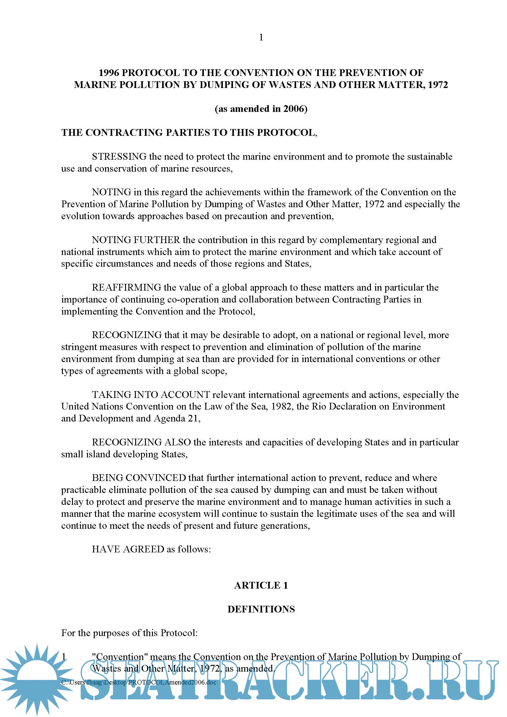 4) Convention on the Prevention of Marine Pollution by Dumping of Wastes and Other Matter (LC1972 & all amendments) – (16 Pages)