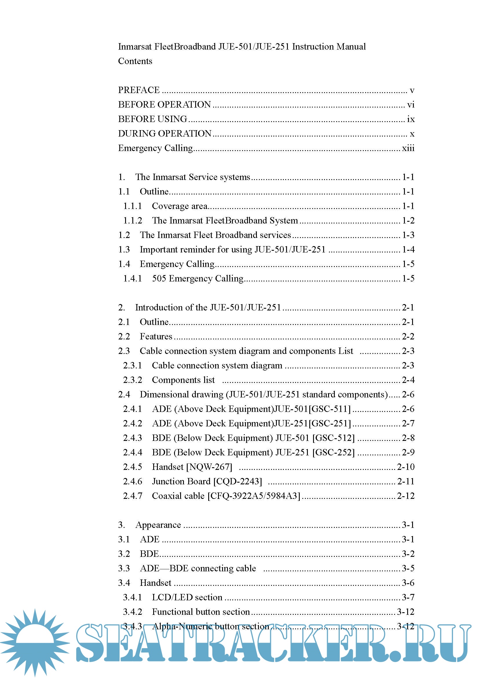 JUE-501/JUE-251 Inmarsat FleetBroadband FB500/FB250 Maritime Satellite Communication Terminal Instruction Manual, Edition 2a