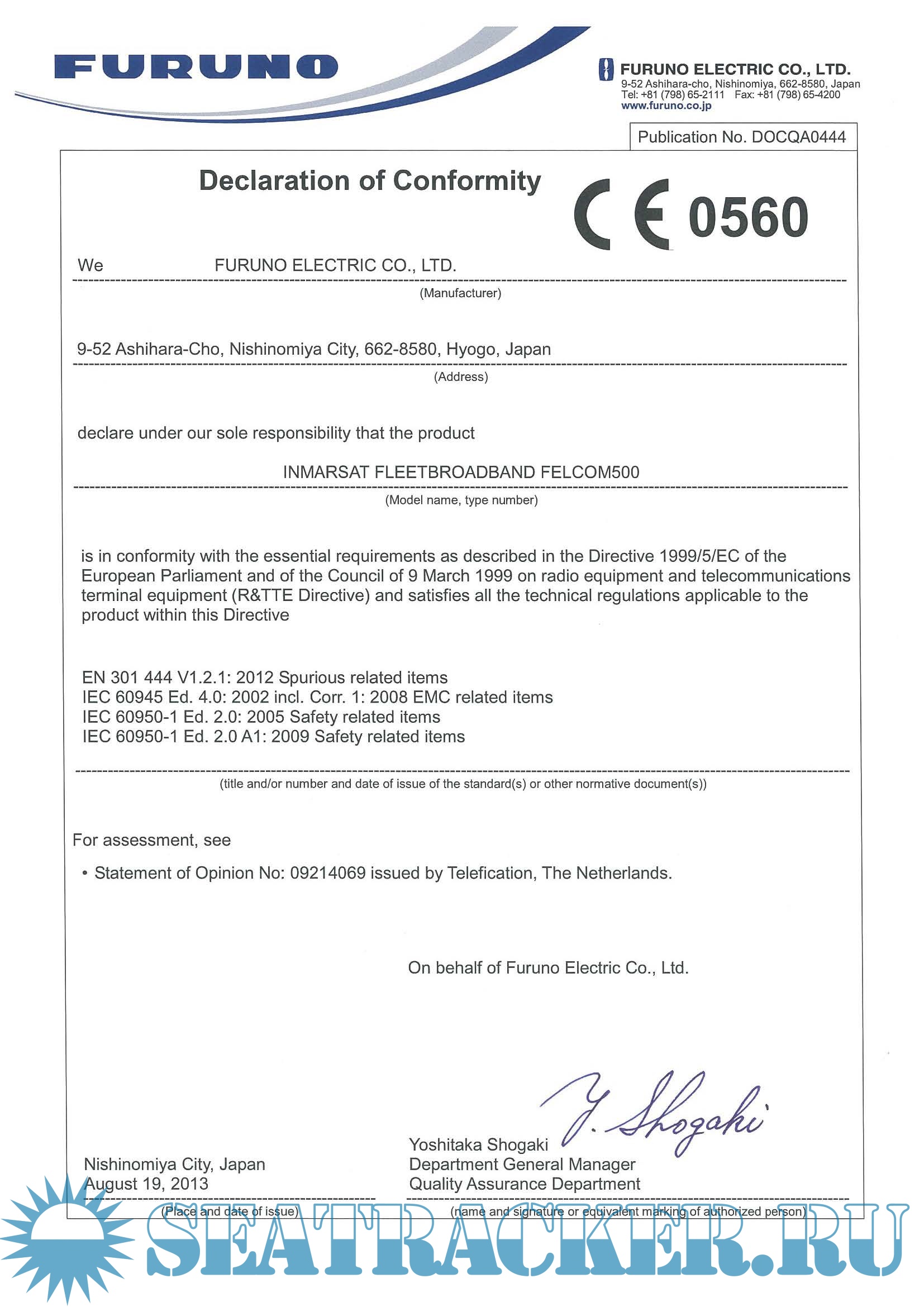 Furuno Felcom 250/500 Inmarsat Fleet BroadBand Operators Manual - Furuno [2012, PDF]