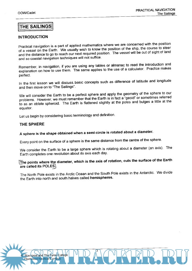 Year: 2006 Language: english Author: Blackpool and The Fylde College Fleetwood Nautical Campus Genre: Training courses Publisher: Blackpool and The Fylde College Fleetwood Nautical Campus Format: PDF Quality: OCR with errors Pages count: 62 Description: Practical navigation is a part of applied mathematics where we are concened with the position of a vessel on the Earth. We usually wish to know the position of the ship, the course to steer and the distance to go to reach our next required position. The vessel will be out of sight of land and so coastal navigation techniques will not suffice. Remember, in navigation, if you are using any tables or almanac to read the introduction and explain how to use them.The same applies to the use of a calculator. Practice makes perfect. ln the first lesson we will discuss basic concepts such as difference of latitude and longitude and then move on to "The Sailings".