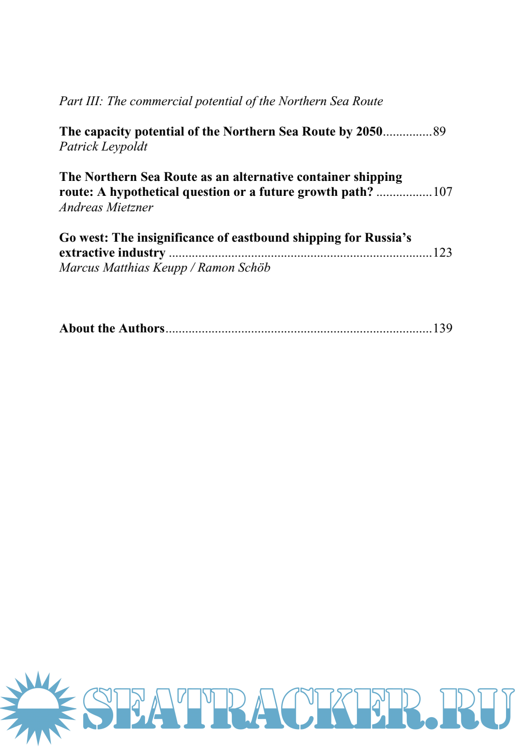 Description: The topic, "Northern Sea Route" has become a highly relevant point on the strategic radar screen of many business and military leaders, since global climate change now opens up a hitherto impassable sea route and positions it as a strategic alternative to the Suez route. Add to this the discovery of many easily extractable commodities and metals in the arctic area. For entrepreneurs, this setting offers new opportunities and risks; for academics, a new research context emerges. The book discusses the strategic, economic, logistic, judicial and military challenges of the future great game in the arctic sea.