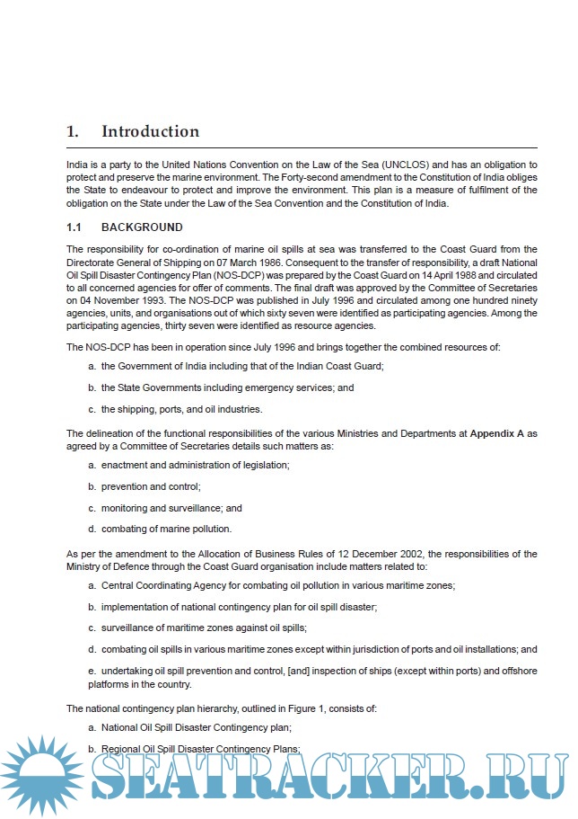 Description: The National Oil Spill Disaster Contingency Plan or NOS-DCP for short, together with the allocation of functional responsibilities to the various Ministries and Departments of the Government of India for oil spill response in the maritime zones of India was approved by a Committee of Secretaries to the Government of India on 04 November 1993.