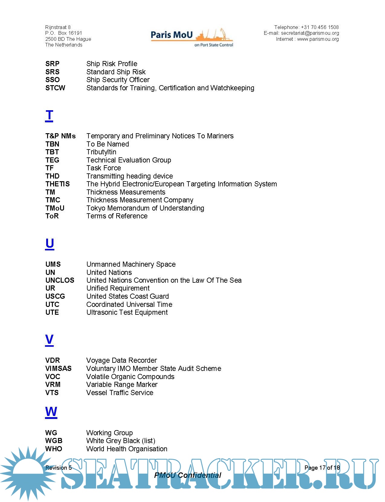 Any definition or abbreviation used in the Paris MoU should be included in this PSCCInstruction. The section dealing with the “Definitions and Abbreviations” in all PSCCInstructions will direct the PSCO to consult this PSCCInstruction.