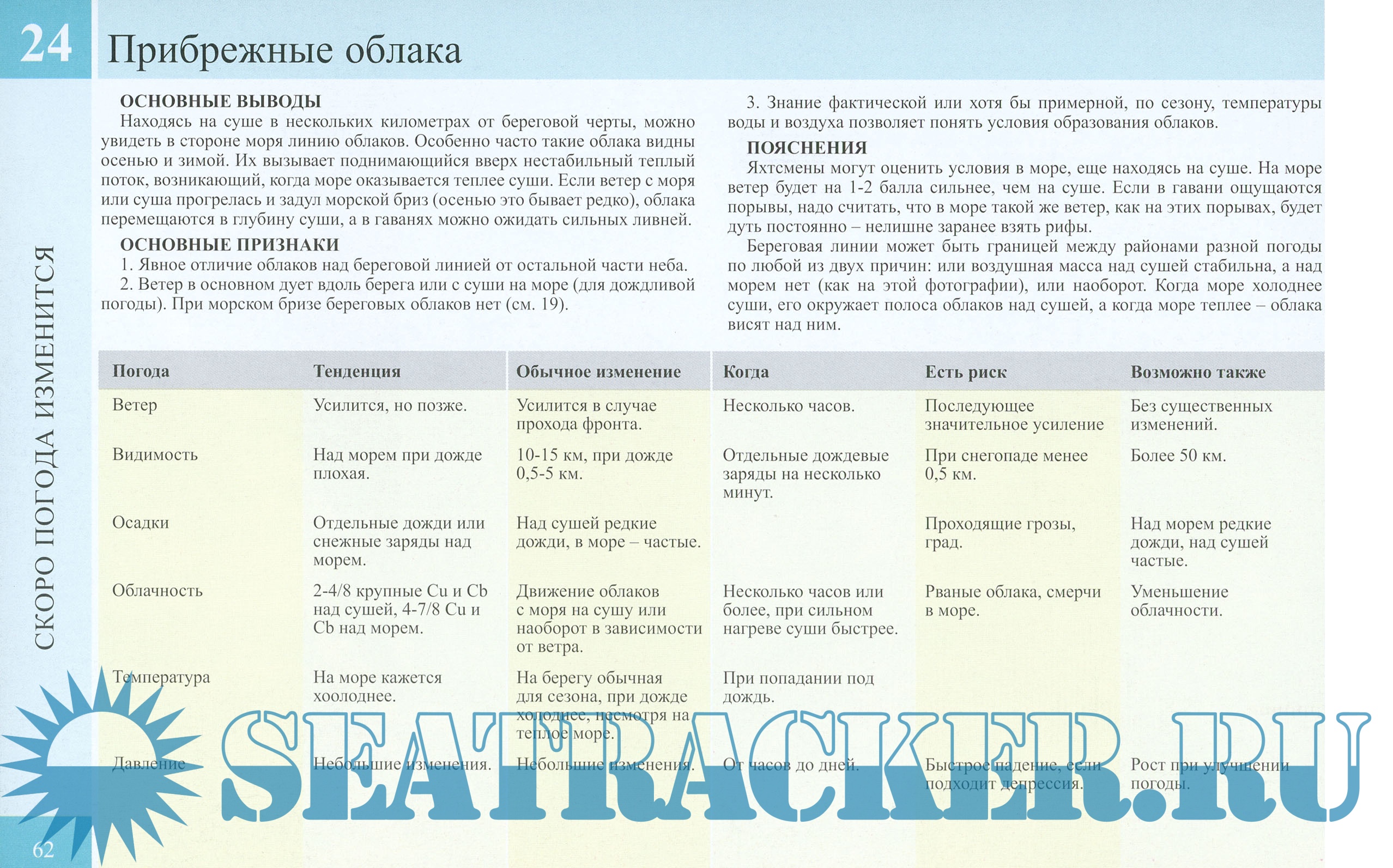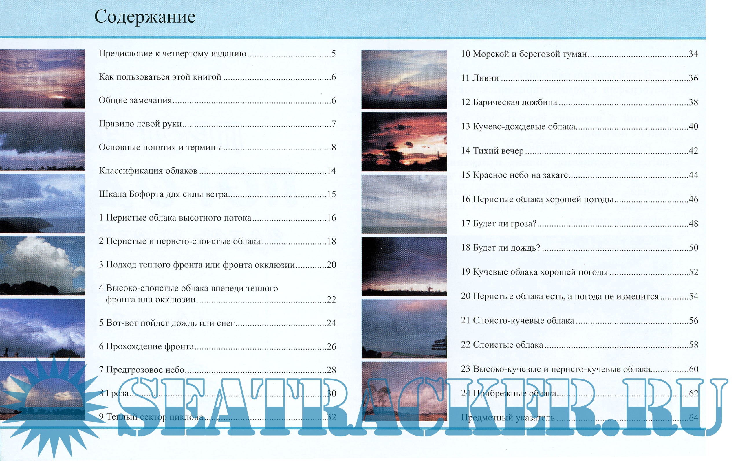 Описание: Справочник по погодному прогнозированию иллюстрирован 24 цветными фотоснимками, которые отображают небо при широком спектре погодных условий. Каждый из снимков снабжен кратким научно-популярным пояснением, а также простой инструкцией по применению и интерпретации с целью составления мгновенного прогноза погоды. Справочник предназначен для широкого практического использования туристами, фермерами, рыбаками, яхтсменами - всеми, для кого погода и ее изменения имеют большое значение.