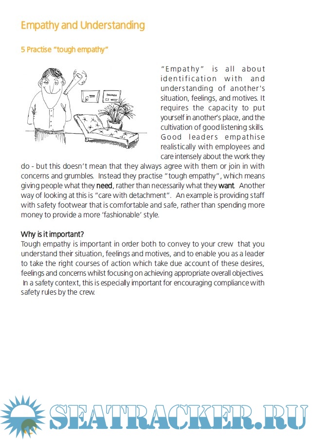 Description: This guide issued by the Maritime and CoastGuard Agency (MCA) is intended to help senior officers and leaders in the maritime industry improve their leadership and people management skills in order to ensure safe operations. The guide contains tips and best practices for ten core leadership qualities for effective safety leadership, split into five categories.